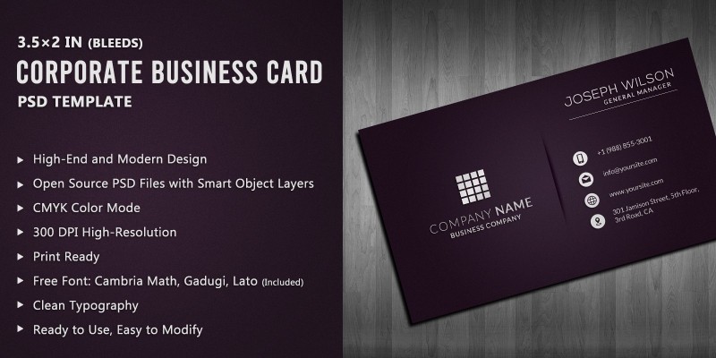 Purple Corporate Business Card. High-End Corporate Business Card Template to your company