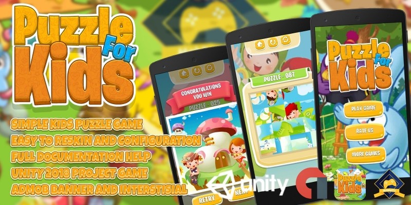 Puzzle Kids Game Unity 2018 Admob. Puzzle Kids Game + Admob Ads Ready + Unity 2018 Game Easy Reskin