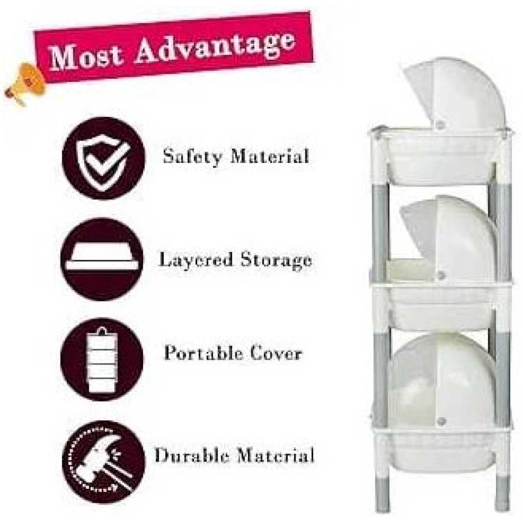 Multipurpose: This Multipurpose Cabinet is an option which you can consider for your kitchen, living room or home storage needs. It can also be used to store your toiletries if placed in a bathroom or as an optional wardrobe storage. Space Efficient: With a dimension of 32.5 cm x 28 cm x 103 cm, the storage cabinet saves up space due to its compact size. It comes along with 3 shelves which develop more space in any corner at your house and provide enough storage area to keep all other household things smartly. Portable: The cabinet is lightweight and can be disassembled to be easily carried from one corner of your home to another. This makes the cabinet portable and easy to use. Key Features: Lightweight and portable, Super strong ABS, Perfect for kitchen storage as well as in bathroom Storage Rack: These Modular Rack hold everything with enough space to place spices, jars and bottom rack owns large space that can use to store rice in large amount. In bathroom towel, shampoo, soap and much more. Space Saving Rack Modular Drawer Kitchen Storage Chest Organizer with Wheel 3 Layer Shelves hold everything with enough space to place towel, shampoo, soap and much more. This measures 32.5cm in length, 28cm in Breadth, 103cm in Height It also used to store Toiletries like closet cleaners, Towels, Toilet Paper, sanitizes etc.