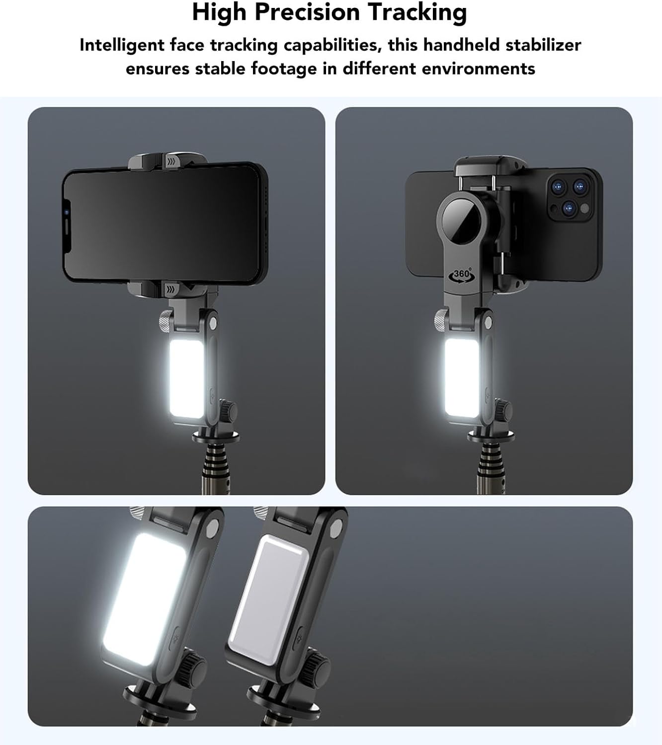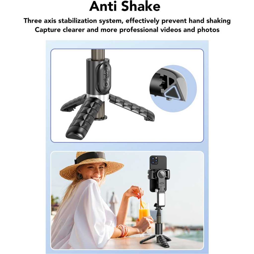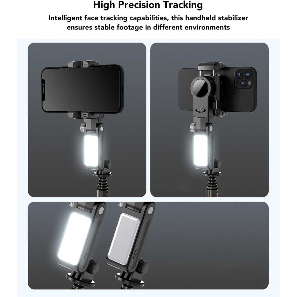 High Precision Tracking: Equipped with intelligent face tracking capabilities, this handheld stabilizer ensures stable footage in different environments. Anti Shake: Designed with a three axis stabilization system, the stabilizer could effectively eliminates hand shaking to capture clearer and more professional videos and photos. Multi Functional Tripod: The built in tripod stand allows users to secure their device and capture shots from various angles, making it a versatile tool for content creation. Bluetooth Connection: With Bluetooth connectivity, users can easily connect their smartphones for easy self photography and remote control functions. Wireless Remote Control: The stabilizer also comes with a wireless remote control feature providing extra convenience to its users when taking videos or selfies.