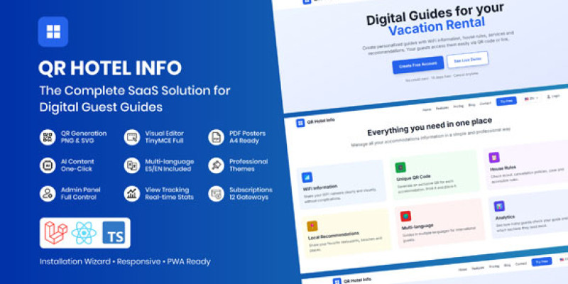 QR Hotel Info - SaaS Digital Hotel Guide System. Complete SaaS platform for creating interactive digital guides for hotel guests and vacation rental visitors.
