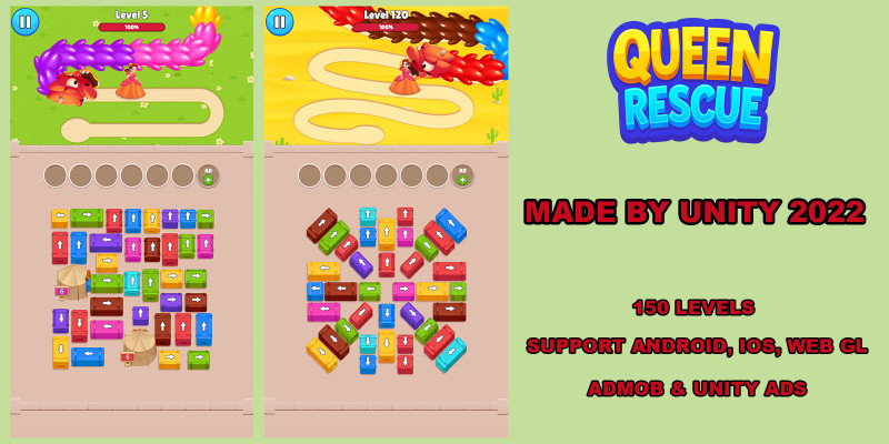 Queen Rescue - Dragon Puzzle Unity Source Code. Rescue the queen by shooting dragons with color-matching cannons! 150 levels, mobile-ready, AdMob integrated.