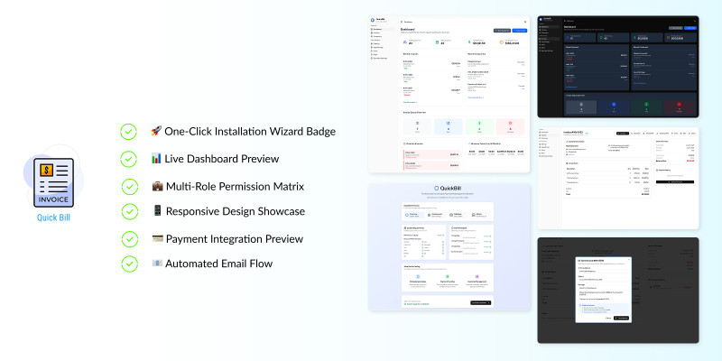QuickBill Pro - Advanced Invoice Management System. Modern invoice management with Laravel 12, React 18 & TypeScript. Features recurring invoices, templates, multi-currency &