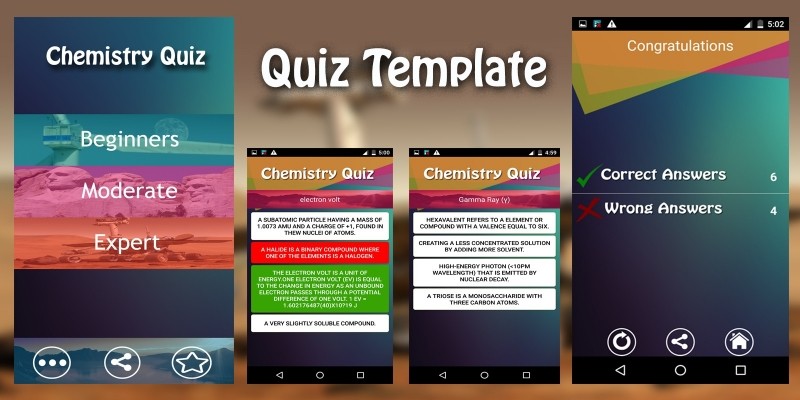 Quiz App Template - Android App Source Code. App fulfilled with elegant UI, which is interactive to use, it engage more user. Template is easy to modifiable.