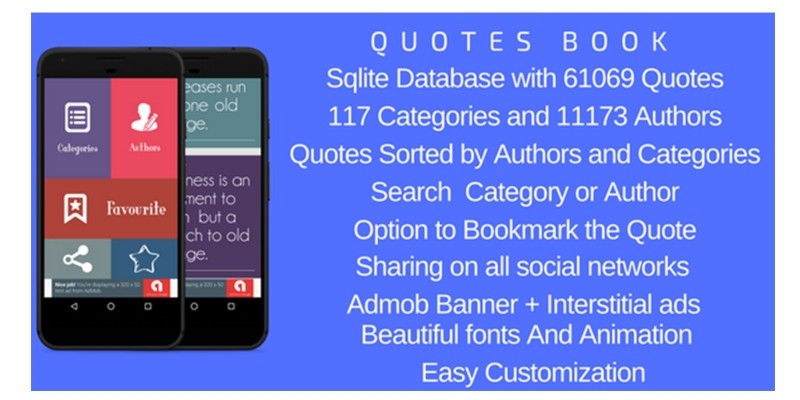 Quotes Pro - Android App Source Code. Android application containing more than 61 thousand quotes from 117 Categories and 11173 Authors