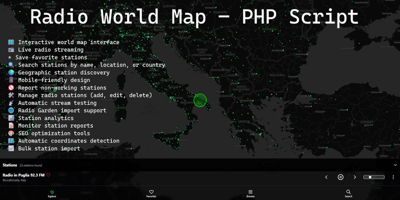 Radio World Map - PHP Script. Interactive World Radio Station Directory in PHP with Live Streaming similar Radio.Garden but not 100% the same