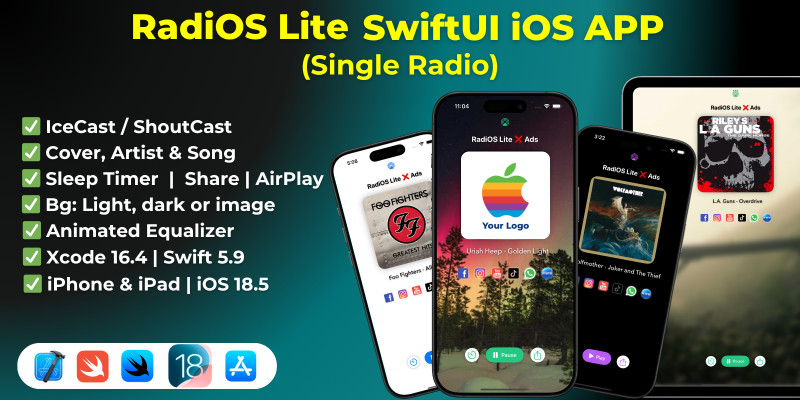 RadiOS Lite SwiftUI APP Radio iOS Single Radio. RadiOS Lite SwiftUI APP Radio iOS 18, Swift Radio, iOS App Template (Single Radio) Support for MP3 streams and IceCast / Shoutcast