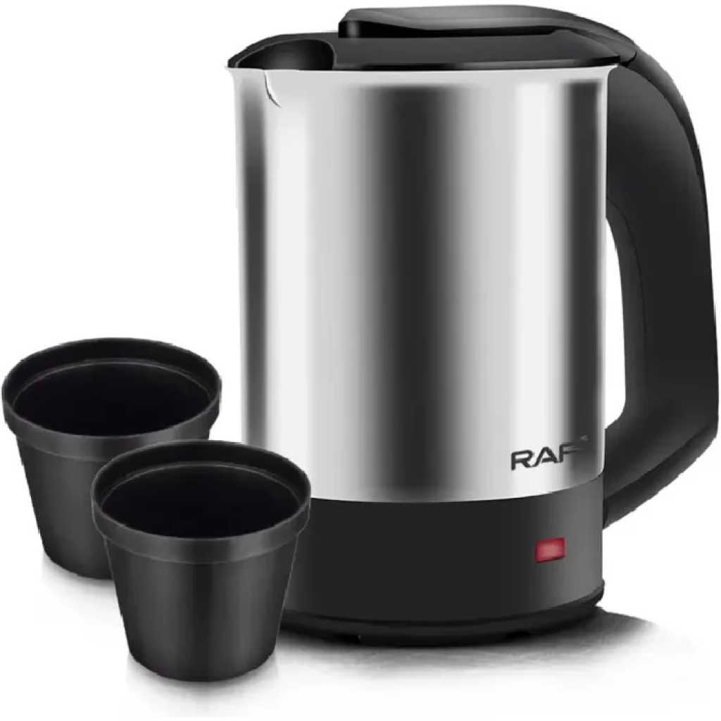 RAF 0.5Litres Travel Electric Kettle | R-7887 The Travel Electric Kettle is your perfect travel companion, designed for those who enjoy hot beverages on the go. Buy it from TilyExpress today. Compact and lightweight, this kettle has a 0.5-liter capacity, ideal for making quick cups of tea, coffee, or instant noodles while traveling, staying at hotels, or even in the office. Its fast boiling feature ensures you’ll have hot water in no time, and the stainless steel interior keeps it durable and rust-resistant for long-term use. The RAF R-7887 includes convenient safety features such as auto shut-off and boil-dry protection, ensuring a worry-free experience. With its sleek and portable design, this travel kettle easily fits into your luggage without taking up much space, making it a must-have for frequent travelers and outdoor enthusiasts. Key Features 0.5-Liter Capacity : Ideal for single servings of hot beverages or small quantities of water on the go. Compact and Portable : Lightweight design, perfect for travel, camping, or office use. Quick Boil : Fast heating element for boiling water in minutes. Stainless Steel Interior : Durable and rust-resistant interior ensures a long-lasting performance. Safety Features : Auto shut-off and boil-dry protection for added safety and peace of mind. Easy-to-Clean : The smooth, stainless steel surface makes cleaning effortless. Specifications Model : R-7887 Capacity : 0.5 liters Material : Stainless steel interior, plastic exterior Auto Shut-Off : Yes Boil-Dry Protection : Yes Color : Silver/Black. Key Features: Model : R-7887 Capacity : 0.5 liters Material : Stainless steel interior, plastic exterior Auto Shut-Off : Yes