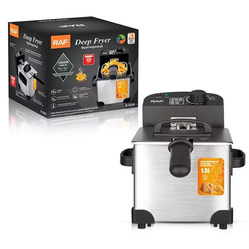 An electric fryer will surely help you in the kitchen. The device is equipped with an anti-odor filter in the lid, which will eliminate unwanted odors from the kitchen and the entire apartment. All necessary switches and buttons are located on the device within easy reach. An adjustable thermostat allows you to control the frying temperature. The control lamp (red) provides information about the operation of the device. The electric fryer is designed for quick preparation of a wide variety of dishes using deep-frying technology: French fries, chopped and cooked vegetables, pies, donuts, pastries, dumplings, etc. for quick frying. Features: Brand: RAF Model: R.5229 Power: 2000W Voltage: 220-240V Frequency: 50/60 Hz Removable tray: Yes Container volume: 1.5 liters. Temperature control: 130-190 ℃. Built-in smart timer Case material: stainless steel Case color: Silver The package includes: 1 x Fryer 1 x Instruction manual Product type: Fryer Key Features: An electric fryer will surely help you in the kitchen. The device is equipped with an anti-odor filter in the lid, which will eliminate unwanted odors from the kitchen and the entire apartment. All necessary switches and buttons are located on the device within easy reach. An adjustable thermostat allows you to control the frying temperature. The control lamp (red) provides information about the operation of the device. The electric fryer is designed for quick preparation of a wide variety of dishes using deep-frying technology: French fries, chopped and cooked vegetables, pies, donuts, pastries, dumplings, etc. for quick frying. Features: Brand: RAF Model: R.5229 Power: 2000W Voltage: 220-240V Frequency: 50/60 Hz Removable tray: Yes Container volume: 1.5 liters. Temperature control: 130-190 ℃. Built-in smart timer Case material: stainless steel Case color: Silver The package includes: 1 x Fryer 1 x Instruction manual Product type: Fryer
