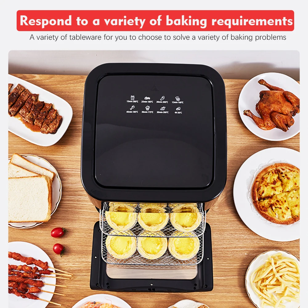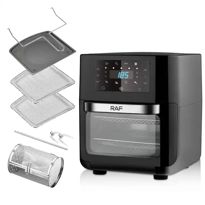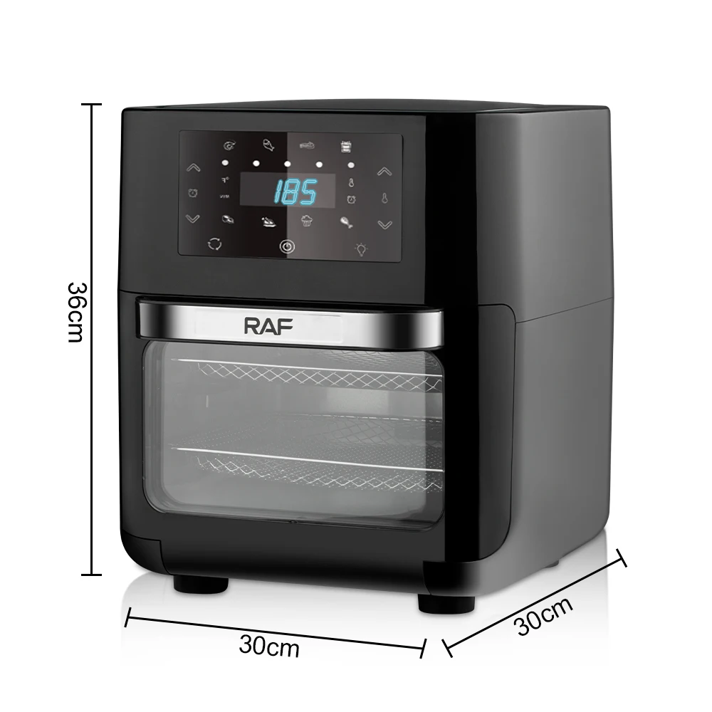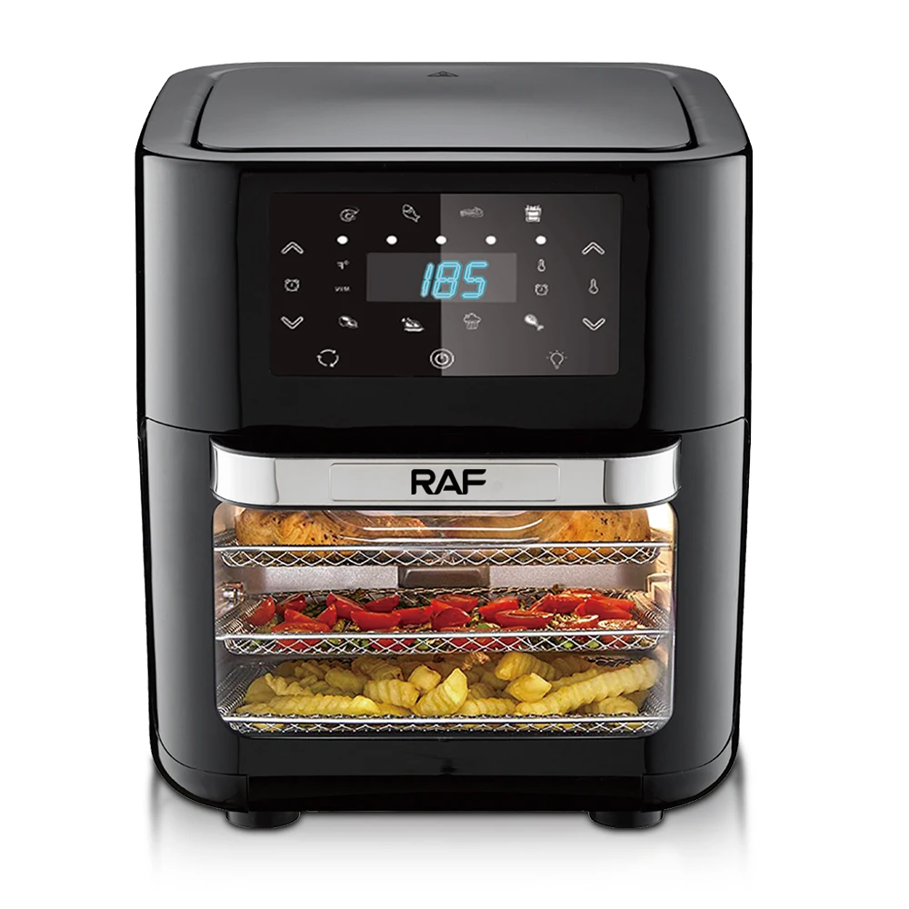 RAF 16L Multifunction Touch Screen Smart Air Fryer Electric Without Oil Free Deep Digital Air Fryer R5293. Key Features: RAF 16L Multifunction Touch Screen Smart Air Fryer Electric Without Oil Free Deep Digital Air Fryer R5293. Low fat fryer for cooking with little to no oil Smart interface with intuitive digital control panel Family meals that can serve up to 6 people thanks to 1.2kg XL capacity in a compact design Performance with Balance power consumption and rapid air circulation system Ultra convenient and personalized with pre-set programs (Fries, Nuggets, Roasted Chicken, Pizza, Meat, Fish, Vegetables, Dessert)