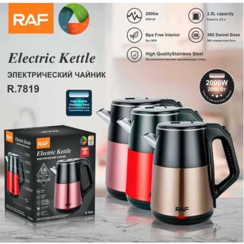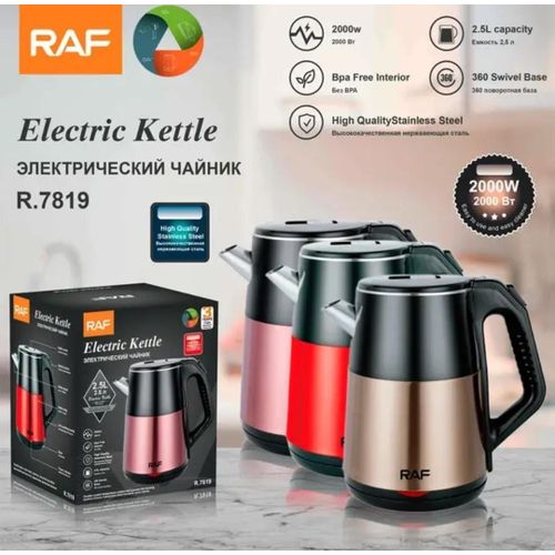 The beautiful classic design and color of the RAF teapot will fit perfectly into any kitchen. The impact-resistant material will be resistant to scratches, chips and other mechanical damage. In addition, stainless steel, which has high hygienic properties, will prevent the accumulation of bacteria and will not absorb foreign odors. Made of stainless steel, you can use it comfortably. Heating is fast, it boils in about 3-4 minutes, saving time and electricity. The elegant aesthetics of the model are complemented by thoughtful ergonomics. suitable for home and office use. The comfortable D-shaped handle and proximity of the function button make it easy to operate with one hand. Features: Brand: RAF Model: R.7819 Power source: Electricity Material: Stainless steel Power: 2200 W Auto power off: yes Capacity: 2.5L The package includes: 1x kettle 1x instruction manual 1x Base Type: Electric kettle
