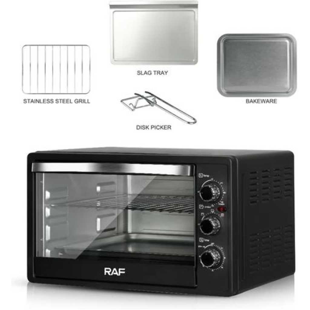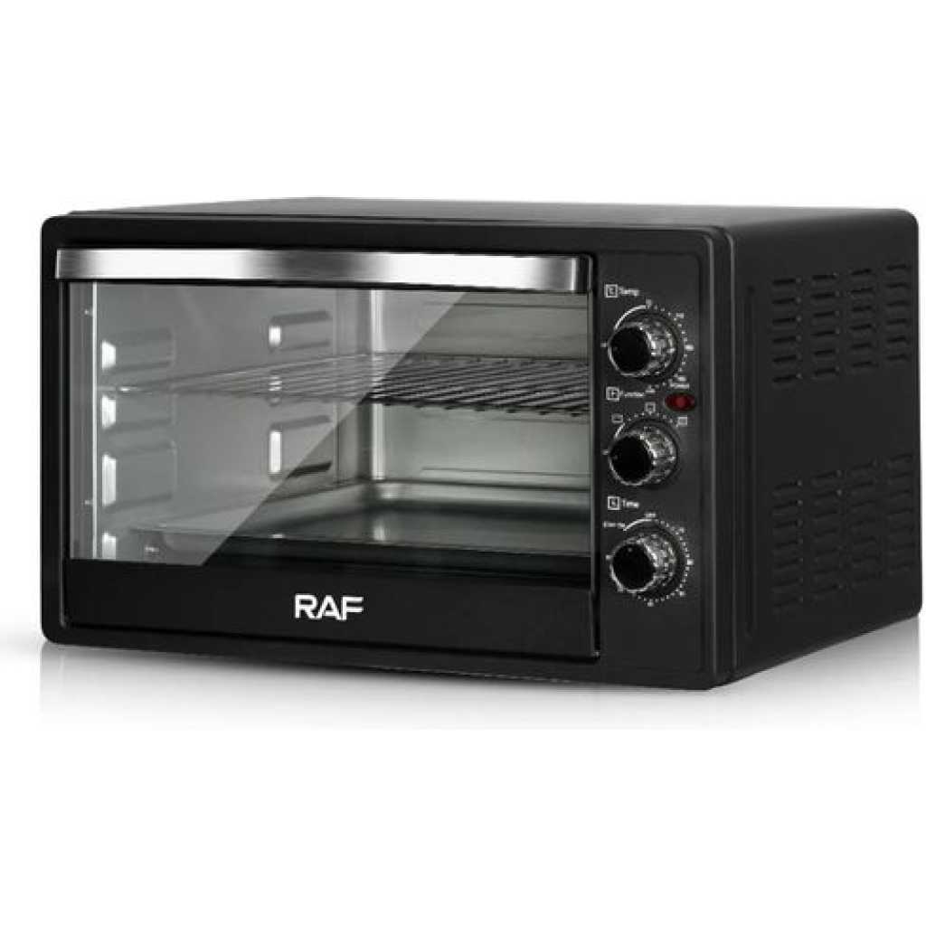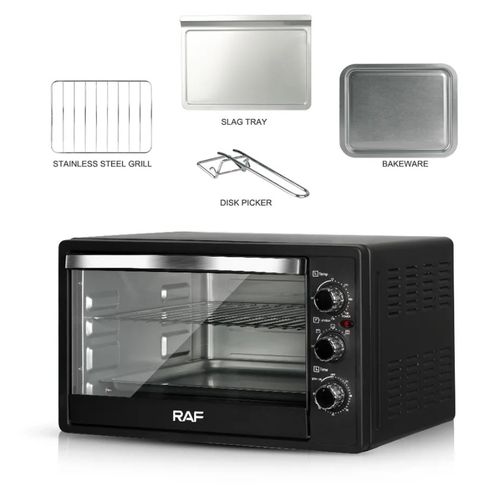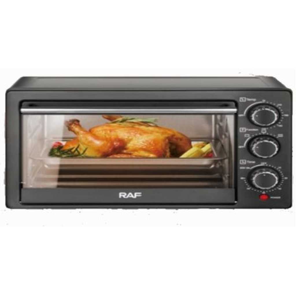 RAF 22 Litre Electric Oven R.5321 – Black. Enjoy everyday meals with this RAF R.5321 22Litres Oven. Its multi-stage cooking facilitates you to use microwave, grill and convection at the same time making your cooking experience memorable. The in-built memory stores the cooking levels simultaneously, thereby saving time and making cooking convenient. RAF R.5321 22Litres Microwave Oven on tilyexpress at a cheap price. Specifications R.5321 Capacity: 22Litres Oven 1200Watts Bake Grill. Key Features: RAF 22 Litre Electric Oven R.5321 – Black. Model No: R.5321 Capacity: 22Litres Oven 1200Watts Bake Grill.