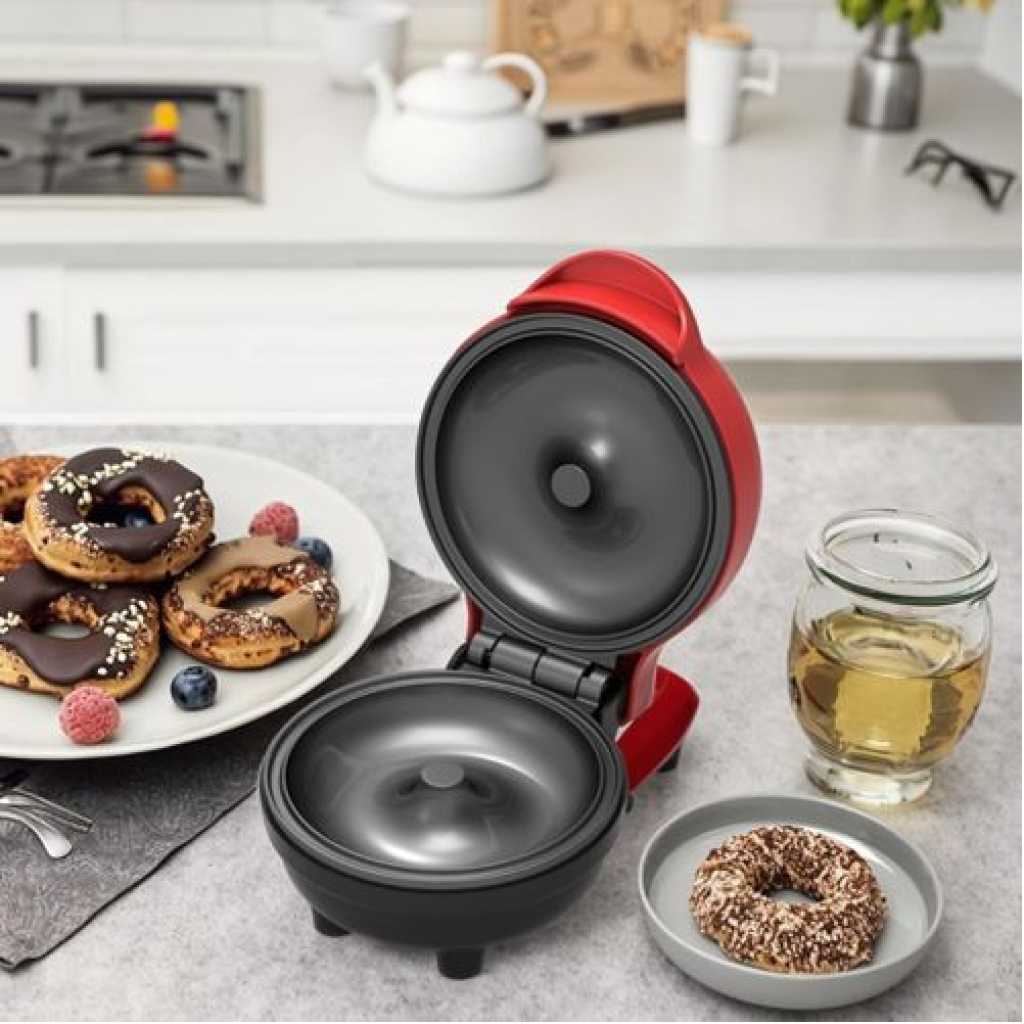 Bake a variety of your favorites- like chocolate covered, spice cake, clear glaze, sprinkles, and more! Makes light and moist donuts with cake or regular yeast recipes, gluten-free recipes and even vegan-friendly varieties! Once the red and green indicators show the unit is powered on and preheated, simply add cooking spray, pour batter, and bake! A cool-touch handle ensures safety and the nonstick surface gives mini donuts a golden crust and perfect release. This baked doughnut maker should be cleaned before first use. After the machine is unplugged and has cooled, the easy non-stick surface simply wipes clean with a damp cloth.