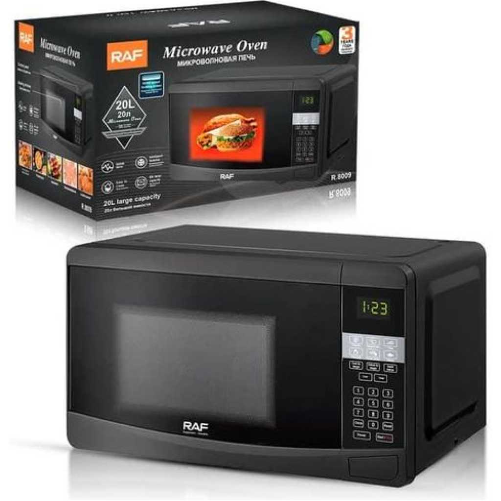 Large Capacity: Enjoy cooking with the RAF Black 800W High Quality Electric Oven, featuring a spacious 20L capacity perfect for preparing various dishes for the entire family. Versatile Functionality: This countertop oven offers true microwave functionality, allowing you to roast chicken, cook pizza, and heat up leftovers with ease. Perfect for both household and kitchen use. Safe & Reliable: Utilizing 800W of output power, the RAF Black 800W Electric Oven heats up quickly and evenly. The mechanical timer control ensures precise cooking times, and its safety features guarantee worry-free usage. High-Quality Construction: Crafted from durable plastic material, this oven boasts a sleek black color that adds a touch of elegance to any kitchen. Its compact design makes it a great addition to any countertop. Comprehensive After-Sales Support: With a 1-year warranty and free spare parts, you can enjoy peace of mind knowing that the RAF Black 800W High Quality Electric Oven is backed by a dedicated after-sales service team.