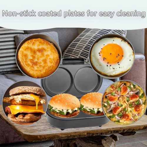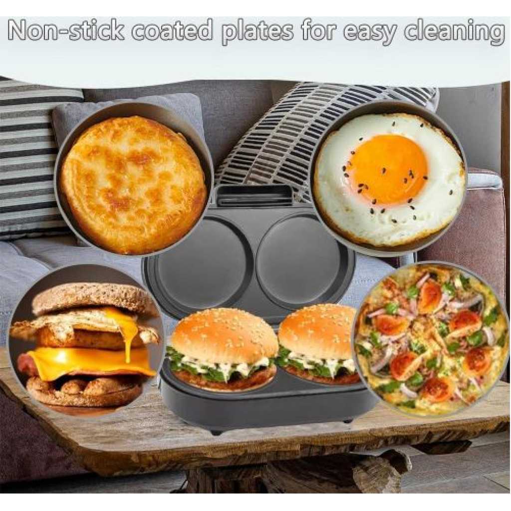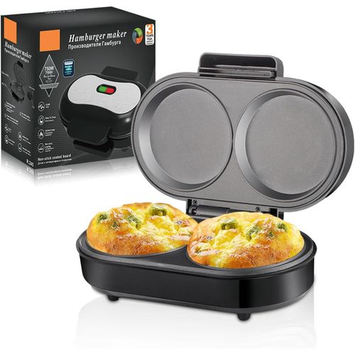 Hamburger maker Breakfast Sandwich Maker They say breakfast is the most important meal of the day. Unfortunately, mornings are hectic for most people, especially families with children. So how do you cope with hunger pangs at breakfast time? If you’re like most people, you have to rush through the meal, gobble down whatever’s handy in the kitchen, or grab a quick, on-the-go bite. That’s where the Hamilton Beach Dual Breakfast Sandwich Maker comes to the rescue. It’s all about making fresh breakfast sandwiches you can grab and go. Just choose your bread and layer on the fixings: egg, cheese, precooked meat, or the ingredients of your choice. Cook two breakfast sandwiches to perfection and to your preferences, and know when it’s ready with the built-in digital timer. In five minutes or less, two perfectly assembled breakfast sandwiches are ready to eat. You can customize each of your breakfast sandwiches with a variety of fresh ingredients. Directions: 1. Preheat Dual Breakfast Sandwich Maker until green Preheat light comes on. Lift cover, top rings, and cooking plates. 2. Place half of Buns, cut-side up, in each bottom ring of Breakfast Sandwich Maker. Top with cheese, apple slices, and bacon. 3. Lower cooking plates and top rings. Add an egg to each cooking plate. yolks with a fork or toothpick. 4. Top with remaining buns, cut-side down. 5. Close cover. Cook 4 to 5 minutes. Rotate cooking plate handles out until they stop. Lift cover and rings and carefully remove sandwiches. 6.Enjoying your home cooked breakfast! Item Type: Small Electric Grill Material: ABS, Aluminum, Stainless Steel Power: 850W Weight: Approx. 1473.00g / 51.96oz Product Size: Approx. 28x16x23cm / 11.0×6.3×9.1in packing list: 1 x Small Electric Grill Notice: The bottom of the machine is not water resistant, please do not directly rinse with water.