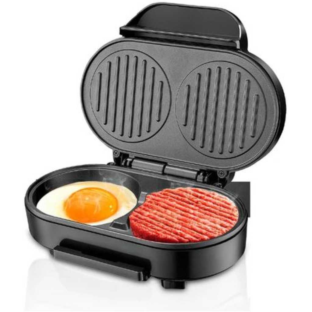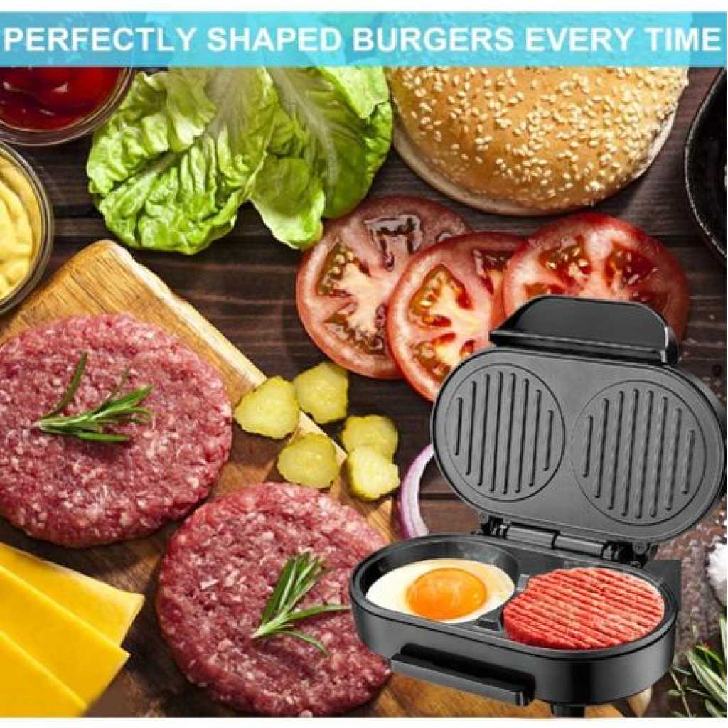 Hamburger maker Breakfast Sandwich Maker They say breakfast is the most important meal of the day. Unfortunately, mornings are hectic for most people, especially families with children. So how do you cope with hunger pangs at breakfast time? If you’re like most people, you have to rush through the meal, gobble down whatever’s handy in the kitchen, or grab a quick, on-the-go bite. That’s where the Hamilton Beach Dual Breakfast Sandwich Maker comes to the rescue. It’s all about making fresh breakfast sandwiches you can grab and go. Just choose your bread and layer on the fixings: egg, cheese, precooked meat, or the ingredients of your choice. Cook two breakfast sandwiches to perfection and to your preferences, and know when it’s ready with the built-in digital timer. In five minutes or less, two perfectly assembled breakfast sandwiches are ready to eat. You can customize each of your breakfast sandwiches with a variety of fresh ingredients. Directions: 1. Preheat Dual Breakfast Sandwich Maker until green Preheat light comes on. Lift cover, top rings, and cooking plates. 2. Place half of Buns, cut-side up, in each bottom ring of Breakfast Sandwich Maker. Top with cheese, apple slices, and bacon. 3. Lower cooking plates and top rings. Add an egg to each cooking plate. yolks with a fork or toothpick. 4. Top with remaining buns, cut-side down. 5. Close cover. Cook 4 to 5 minutes. Rotate cooking plate handles out until they stop. Lift cover and rings and carefully remove sandwiches. 6.Enjoying your home cooked breakfast! Item Type: Small Electric Grill Material: ABS, Aluminum, Stainless Steel Power: 850W Weight: Approx. 1473.00g / 51.96oz Product Size: Approx. 28x16x23cm / 11.0×6.3×9.1in packing list: 1 x Small Electric Grill Notice: The bottom of the machine is not water resistant, please do not directly rinse with water.