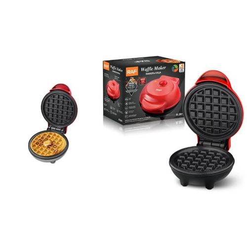 RAF Mini Waffle Maker Portable Electric Non Stick Waffle Iron Round Waffle Maker Grill Machine for Individual Pancakes, Cookies, Eggs, Waffles, Paninis, Breakfast, Lunch, Snack-Pack of 1