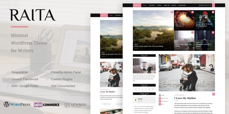 Raita - Minimal WordPress Theme For Writers. Simple, clean, minimal and easy to customize WordPress theme for Writers.