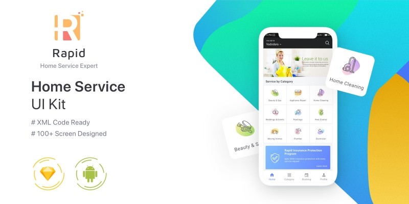 Rapid - Android UI Kit. Home service on demand, android app template with 200+ screen, with xml code.
