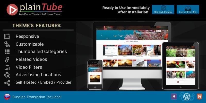 RAWMPlainTube -Video Tube WordPress Theme. Professional Tube Theme for WordPress ready to use immediately after installation