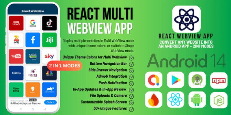 React Multi WebView - Android App for Any Website. React Multi WebView converts any website to Android app using multi-tab or single webview modes! — your choice!