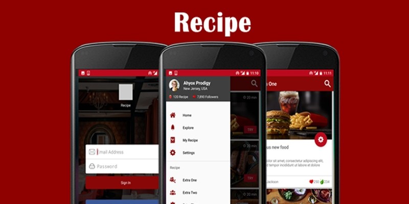 Recipe - Android Studio App UI Kit. Recipe app template for restaurants and food bloggers