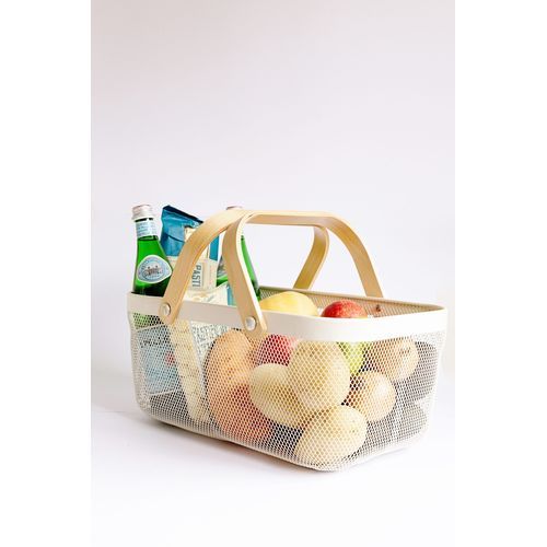 Rectangle Metal Mesh Fruit Shopping Wooden Handle Storage Basket- Multi-colour. 1. Made of metal steel mesh and wooden handle, durable. 2. Anti-rust and anti-corrosion. 3. It can be used for household daily use and kitchen storage. For example, fruits, snacks, vegetables, toys, bathroom storage, etc. Specifications: Product Name: Storage Basket Quantity: 1 Pc Package Included: 1x Storage Basket