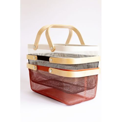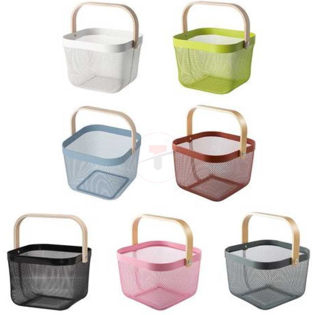 Key Features: Rectangle Metal Mesh Fruit Shopping Wooden Handle Storage Basket- Multi-colour. Small Basket With Handle: These mesh fruit holders for kitchen countertops are a great and decorative way to organize items within your household or produce, bread, vegetables, and snacks Versatile: Use each wire mesh basket for its own use; useful as a way to store fruit, organize shelves, and can even be taken out for a picnic Quality Made: Durable and built to last, each mesh basket is made with metal wire and includes a wooden handle, ensuring your product is safe while it’s stored Dimensions: Each mesh fruit basket is 9.5 x 9.5 x 7 inches, 12 inches with the handle; perfect for holding fruits and other household items Comes With: You will receive 1 black pantry basket, for multiple needs throughout the house
