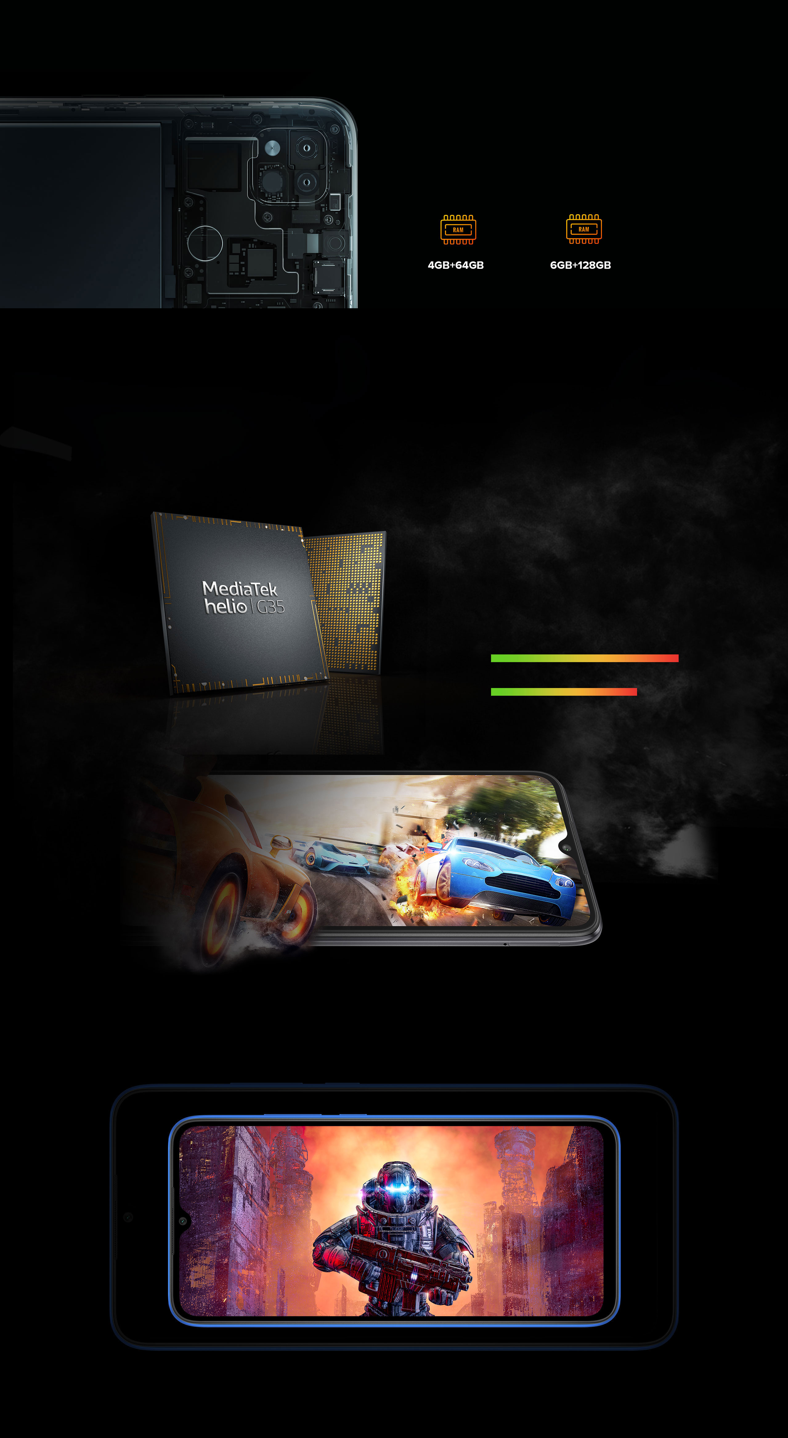 ANTI-SLIP WITH A UNIQUE GRIP The back features a textured design that prevents fingerprints so that the device can retain its pristinelook at all times. PLAY MORE. With a PROCESSOR that Performs Faster The Helio G35 is optimized for HyperEngine performance that delivers dynamic managment between CPU, GPU & Memory. The octa core processor enables fast performance, smooth and sustained gameplay making the G35 power-efficient. As far as the cameras are concerned, the Redmi 9 Activ on the rear packs a 13-megapixel primary camera with an f/2.2 aperture, and a 2-megapixel camera with an f/2.4 aperture. The rear camera setup has autofocus. It has a single front camera setup for selfies, featuring a 5-megapixel sensor with an f/2.2 aperture and a pixel size of 1.12-micron. The Redmi 9 Activ runs MIUI 12 is based on Android 10 and packs inbuilt storage that can be expanded via microSD card (up to 512GB) with a dedicated slot. The Redmi 9 Activ is a dual-SIM (GSM and GSM) mobile that accepts Nano-SIM and Nano-SIM cards. The Redmi 9 Activ measures 164.90 x 77.07 x 9.00mm (height x width x thickness) and weighs 194.00 grams. It was launched in Carbon Black, Coral Green, and Metallic Purple colours. Connectivity options on the Redmi 9 Activ include Wi-Fi 802.11 b/g/n, GPS, Bluetooth v5.00, Infrared, USB Type-C, FM radio, 3G, and 4G (with support for Band 40 used by some LTE networks in India). Sensors on the phone include accelerometer, ambient light sensor, proximity sensor, and fingerprint sensor. The Redmi 9 Activ supports face unlock.