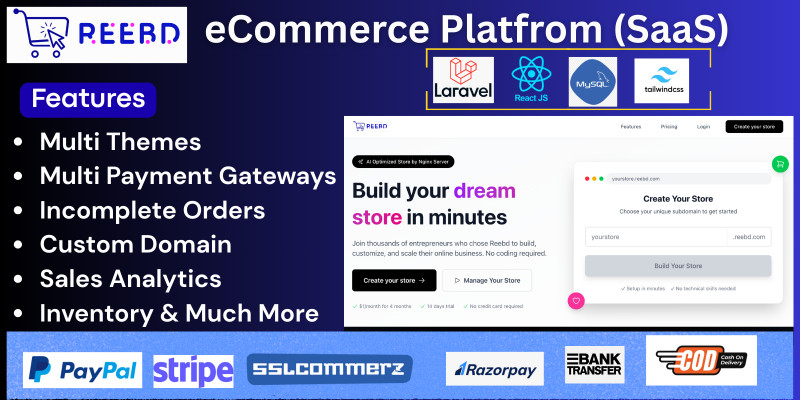 Reebd - Multi-Tenant eCommerce - SaaS version. Run your own e-Commerce SaaS Business like Shopify