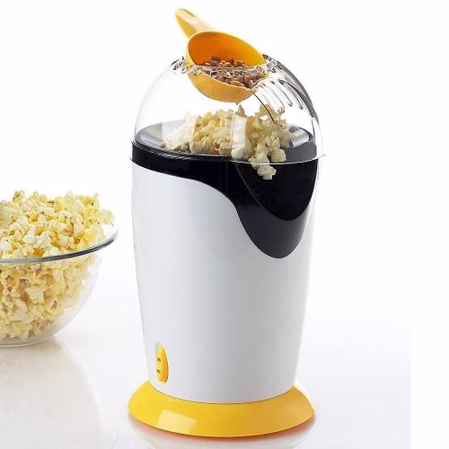 Popcorn Maker What is the fun in watching the latest season of your favourite crime series without a bowl of popcorn to snack on? Get this Hot Air Popper popcorn maker from Relia and make popcorn at your home. Oil-less cooking As this popcorn maker uses hot air to make popcorns, oil is not required. This makes the snack healthy too. Easy controls The functioning of this appliance can be controlled through a simple on/off switch.