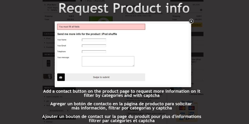 Request Product Info - PrestaShop Module. Request product info allows you to add a contact button on the product page to request more information on it.