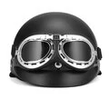 Retro Mat Sort Motorcykel Halvansigtshjelm Biker Scooter Med Solvisir UV-Briller Cafe Racer