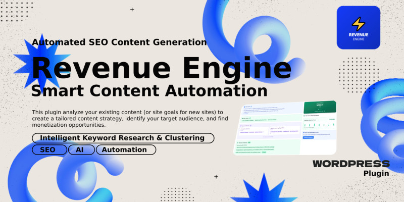 Revenue Engine - Smart Content Automation WP. Uses real Ahrefs data to find profitable keywords, then auto-writes SEO content that ranks and earns. A true revenue autopilot.