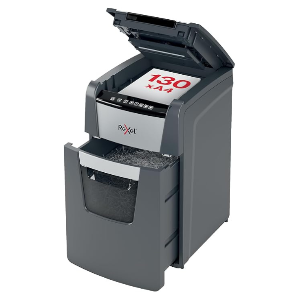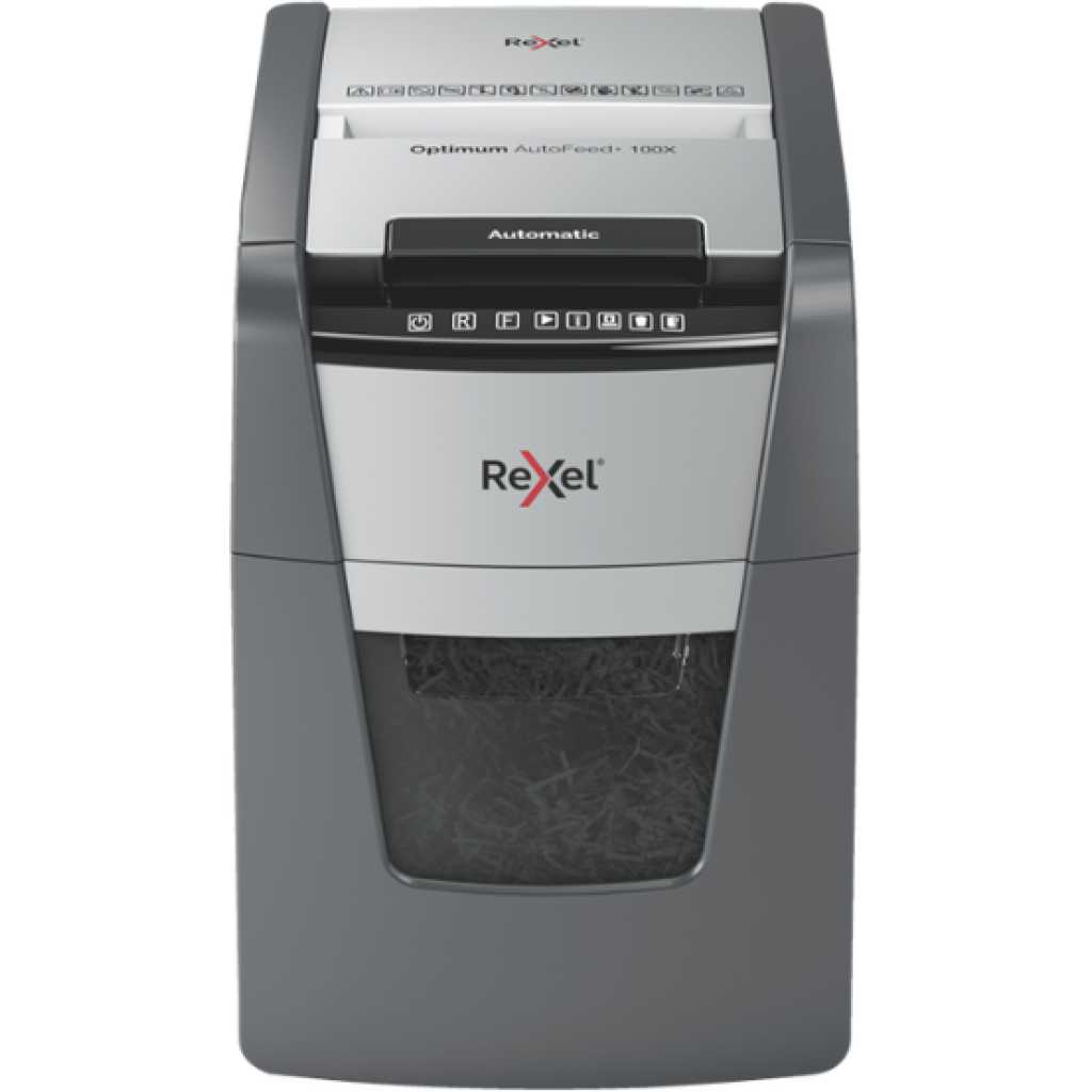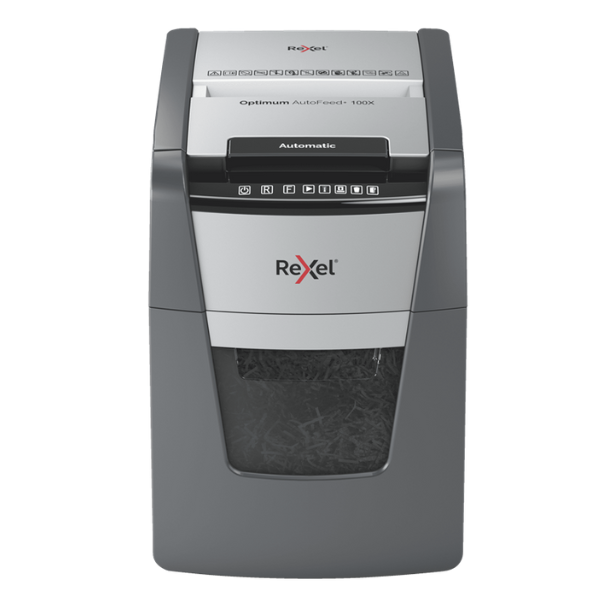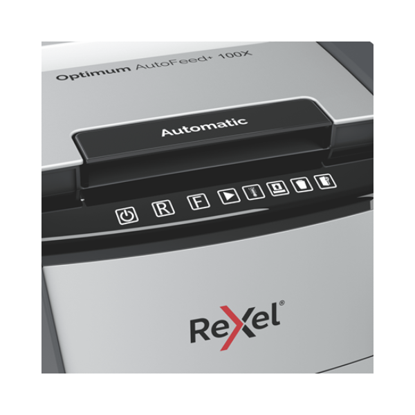 The Rexel Optimum AutoFeed+ 100X Cross-Cut Shredder is designed to simplify your document destruction needs, whether for a small office or home setup. This innovative shredder features advanced auto-feeding technology, allowing you to shred up to 100 sheets of A4 paper (80gsm) at a time without needing to stand by and manually insert each page. This efficiency not only saves time but also increases productivity, especially in busy office environments. Security and Performance: Security is paramount with the Optimum AutoFeed+ 100X, providing a P-4 security level, which ensures that your sensitive documents are shredded into 4x28mm cross-cut pieces. This size is ideal for most business and personal documents, meeting GDPR compliance standards. The machine is also capable of shredding staples, paper clips, and even credit cards, making it a versatile addition to any workspace. Ease of Use: The shredder is designed with user convenience in mind. Its 34-liter pull-out bin is large enough to hold a significant amount of shredded material, reducing the frequency of emptying. The anti-jam technology ensures smooth operation, preventing frustrating paper jams that can slow down your work. Additionally, the shredder includes a manual slot for up to 8 sheets, providing flexibility for smaller shredding tasks. Quiet and Efficient: One of the standout features of the Rexel Optimum AutoFeed+ 100X is its ultra-quiet operation, running at just 55dBA. This makes it ideal for environments where noise levels need to be kept to a minimum. The shredder also offers a continuous run time of 20 minutes, with a cooling fan to prevent overheating and an automatic sleep mode that activates after 3 minutes of non-use, conserving energy and extending the machine’s lifespan. Build and Design: A sleek, modern design in silver, the Rexel Optimum AutoFeed+ 100X will fit seamlessly into any office or home setting. The touch control panel makes it easy to operate, and the infra-red bin full sensor ensures that you are alerted when the bin needs to be emptied, preventing overflow and potential mess. Ideal for Professionals: Whether you need a reliable shredder for personal use or a small team, the Optimum AutoFeed+ 100X offers the perfect balance of security, efficiency, and ease of use. Its robust build and thoughtful features make it an investment in both your time and the security of your sensitive documents. Technical Specifications: Shredder Type: Cross-Cut Shredder Security Level (DIN): P-4 Cut Size: 4x28mm Sheet Capacity (Auto Feed): 100 sheets Sheet Capacity (Manual Slot): 8 sheets Bin Capacity: 34 liters Noise Level: 55dBA Continuous Run Time: 20 minutes Cooling System: Fan cooling with sleep mode Additional Features: Anti-jam technology, Infra-red bin full sensor, Shreds staples, paper clips, and credit cards Throat Width: 220mm Plug Type: UK