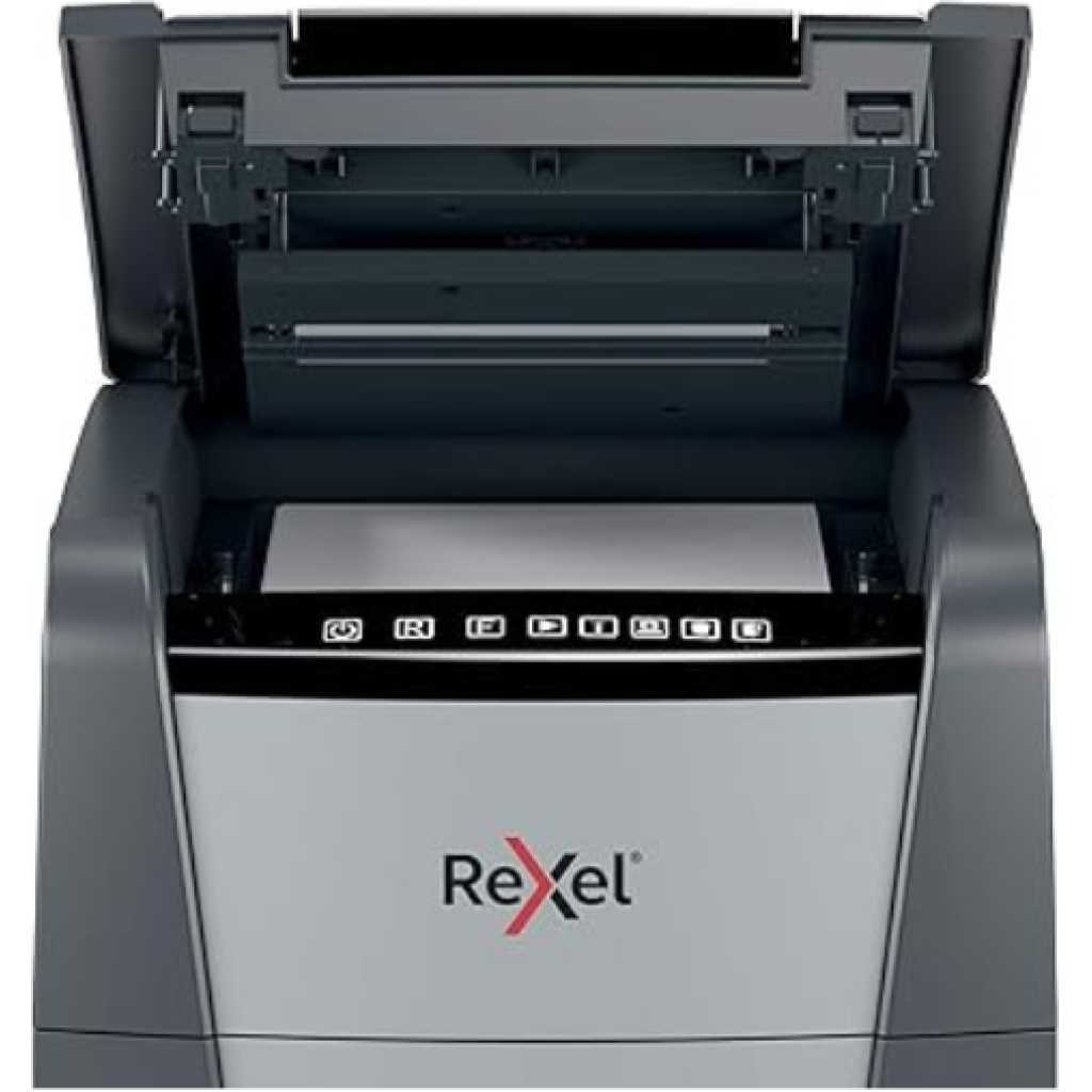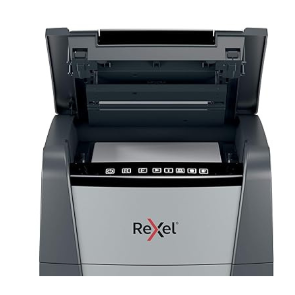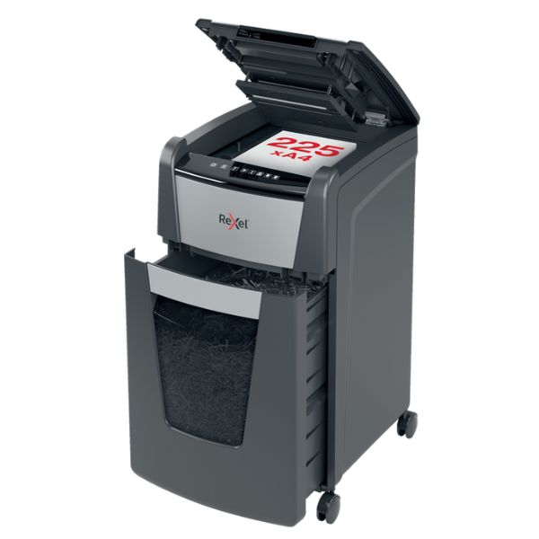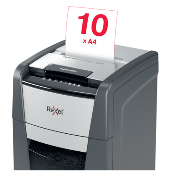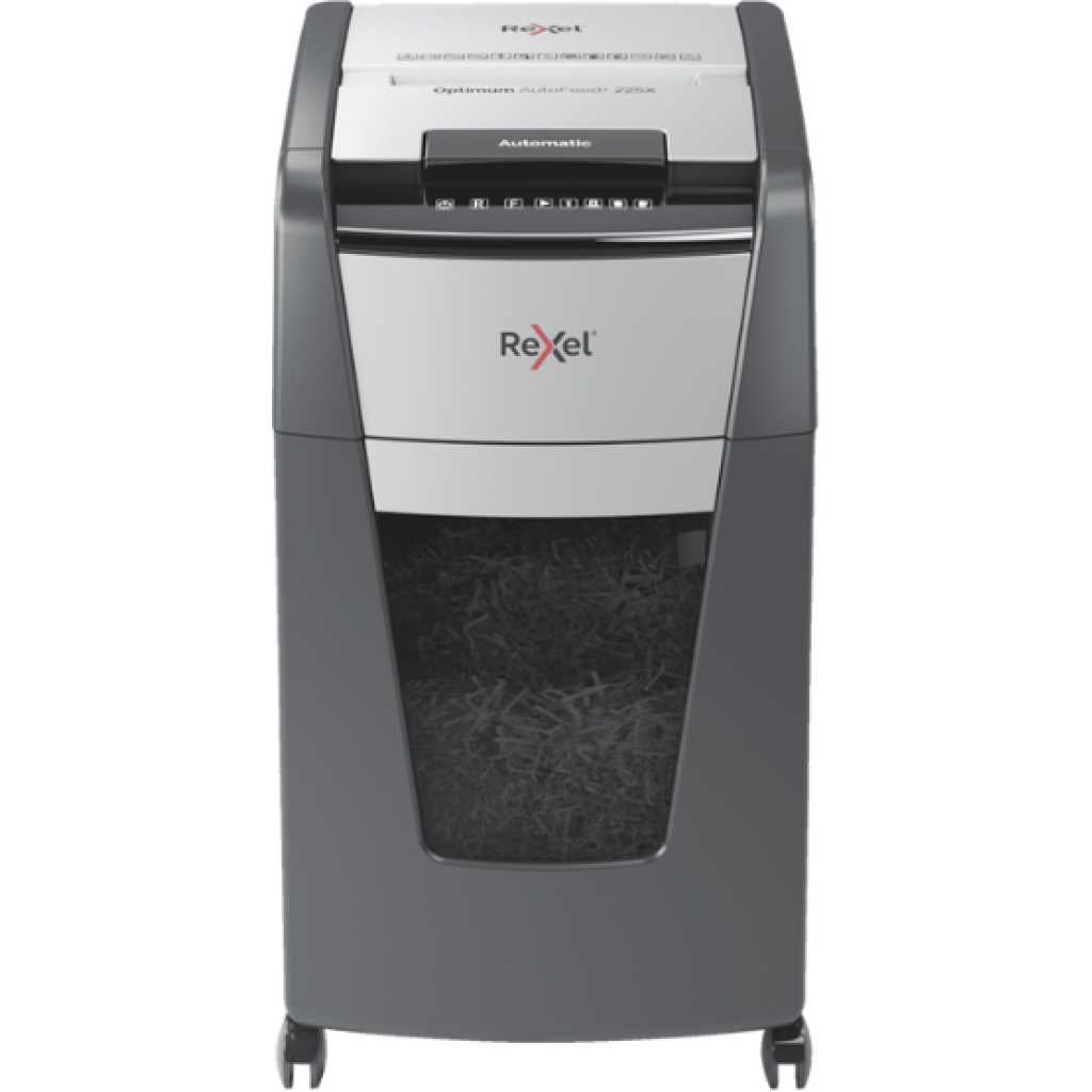 The Rexel Optimum AutoFeed+ 225X is a high-performance automatic shredder designed for busy offices and individuals who require a secure and efficient way to dispose of confidential documents. This user-friendly shredder boasts a robust set of features, making it the perfect choice for those seeking a reliable and convenient shredding solution. Automatic Feeding for Uninterrupted Workflow: The Optimum AutoFeed+ 225X eliminates the need for manual feeding. Simply stack up to 225 sheets of A4 paper (80gsm) into the automatic feed tray, and the shredder will efficiently shred your documents without requiring constant attention. This feature allows you to focus on other tasks while the shredder handles the shredding process, significantly improving your productivity. P-4 Cross Cut Shreds for Enhanced Security: The shredder utilizes a P-4 cross-cut shredding mechanism, transforming your documents into confetti-like particles measuring approximately 4x25mm. This level of shredding offers a good balance between security and capacity, making it ideal for disposing of confidential documents such as bank statements, tax forms, and personnel records. Large Capacity Bin Minimizes Emptying Frequency: The 60-litre bin provides ample capacity to accommodate a significant volume of shredded paper before requiring emptying. This eliminates the need for frequent emptying, minimizing interruptions and allowing you to focus on your work. The bin features a convenient pull-out design for easy disposal of shredded materials. Handles Common Office Staples and Paperclips: The Rexel Optimum AutoFeed+ 225X is equipped to shred not only paper but also common office staples and paperclips. This eliminates the need for pre-sorting your documents, saving you valuable time and effort. The shredder utilizes a robust cutting mechanism that can handle these materials with ease. Quiet Operation for a Peaceful Work Environment: Maintaining a quiet work environment is essential for comfort and productivity. The Rexel Optimum AutoFeed+ 225X operates at a noise level of just 55 dB, making it significantly quieter than many other shredders on the market. This allows you to shred documents without disrupting your colleagues or creating an unpleasant working atmosphere. Additional Features for Enhanced User Experience: The Rexel Optimum AutoFeed+ 225X boasts a range of additional features designed to enhance the user experience: Anti-Jam Technology: Prevents paper jams for uninterrupted shredding. Bin Full Sensor: Alerts you when the bin needs emptying. Touch Control Panel: Provides user-friendly control for all shredding functions. Sleep Mode: Automatically activates after 3 minutes of inactivity to conserve energy. Castor Wheels: Allow for effortless mobility within your workspace. Ideal for Home Offices and Small Businesses: The Rexel Optimum AutoFeed+ 225X is a versatile shredder that caters to the needs of both home offices and small businesses. Its automatic feeding mechanism, high shredding capacity, and P-4 cross-cut security make it a perfect solution for those who require a reliable and secure way to dispose of confidential documents. Invest in Peace of Mind with Secure Document Shredding: In today’s digital age, information security takes paramount importance. The Rexel Optimum AutoFeed+ 225X allows you to ensure that your confidential documents are shredded into unrecognizable particles, minimizing the risk of sensitive information falling into the wrong hands. This shredder provides peace of mind, knowing that your confidential data is securely disposed of. Technical Specifications: Shredding Capacity (Automatic): 225 Sheets (80gsm) Shredding Capacity (Manual): 10 Sheets (80gsm) Security Level: P-4 Cross Cut (4x25mm) Shreds Staples & Paperclips: Yes Noise Level: 55 dB Bin Capacity: 60 Litres Duty Cycle: 30 Minutes On / 30 Minutes Off Cooling System: Fan Cooling Sleep Mode: After 3 Minutes of Inactivity Control Panel: Touch Control Panel Bin Full Sensor: Yes Anti-Jam Technology: Yes Safety Features: Auto Shut-Off