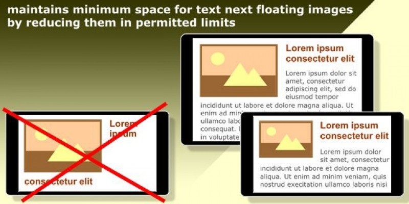 RFI-helper - Responsive Floating Images. Maintains minimum space for text next floating images by reducing them in permitted limits
