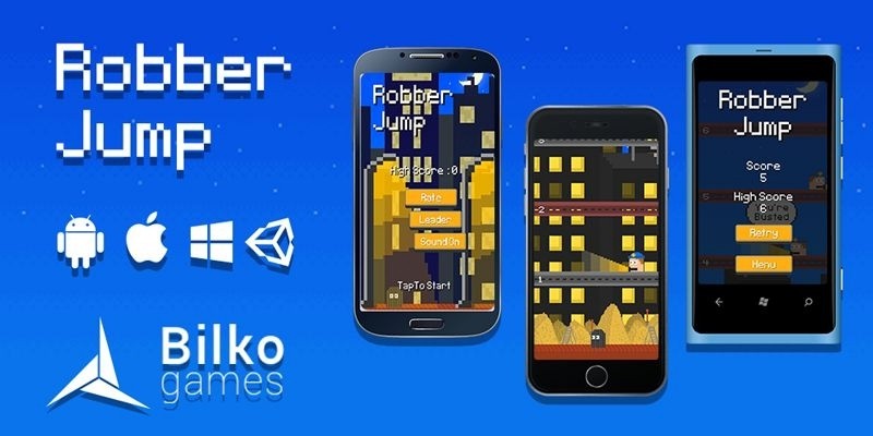 Robber Jump - Unity Game Source Code. The Robber is forced to flee from the police to move to an upper floor.