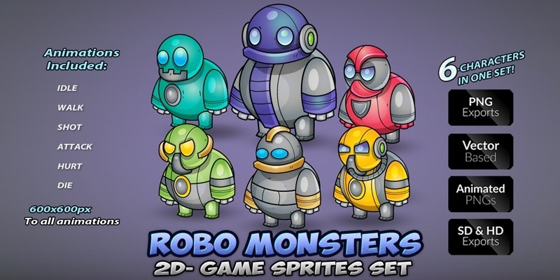 Robo Monsters Game Sprites Set