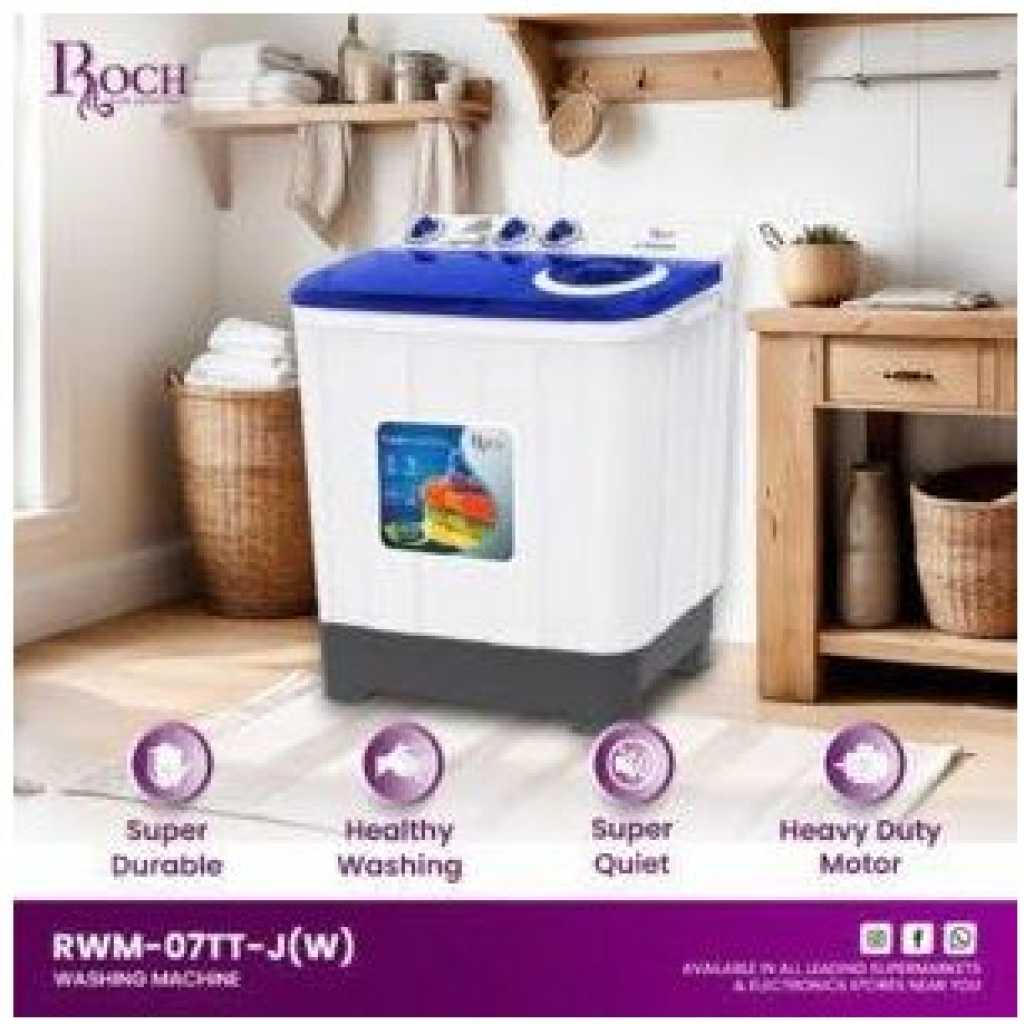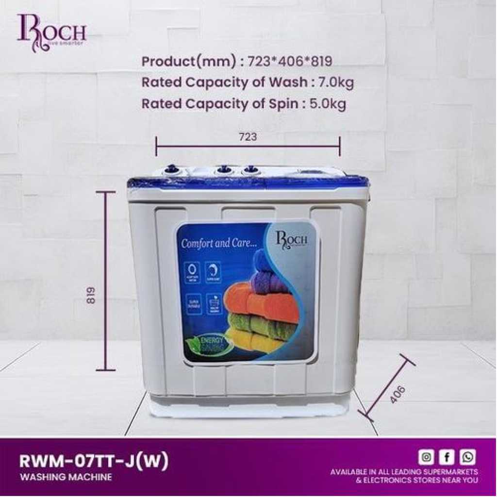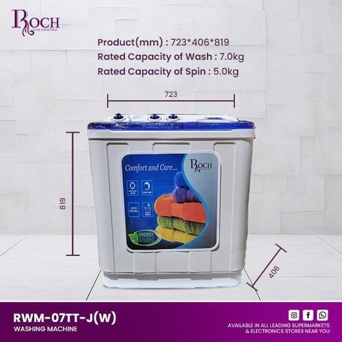 Introducing the ROCH Washing Machine, your ultimate companion for efficient laundry days. Engineered with a Heavy Duty Motor, this washing machine promises durability and exceptional performance. Whether you’re washing delicate fabrics or heavy loads, its Super Quiet operation ensures a peaceful environment. Designed for convenience, the ROCH Washing Machine features a compact size with dimensions of 723406819 mm, making it suitable for any living space. With a Rated Capacity of Wash at 7.0kg , it meets your daily laundry needs effortlessly. Experience Healthy Washing with every cycle, as the ROCH Washing Machine incorporates advanced technologies to ensure your clothes are cleaned thoroughly while maintaining their fabric integrity. It’s not just a machine; it’s a solution that simplifies your laundry routine. Upgrade your home with the ROCH Washing Machine and enjoy the benefits of a robust, user-friendly appliance that prioritizes efficiency and durability. Perfect for households of all sizes, it blends seamlessly into modern living spaces while delivering superior washing performance. Discover the difference with ROCH Washing Machine – where simplicity meets functionality for a cleaner, healthier laundry experience. Key Features: 2 sections Electric washer by Roch Washing machine with a capacity of 7 kg 4 software keys 1 water Entrance Choose the washing temperatures Timer for washing process Timer for drying process the rotation speed of washer 123.9 rpm Dryer rotation speed 1550 rpm Electricity: 220 volts, frequency: 60 Hz
