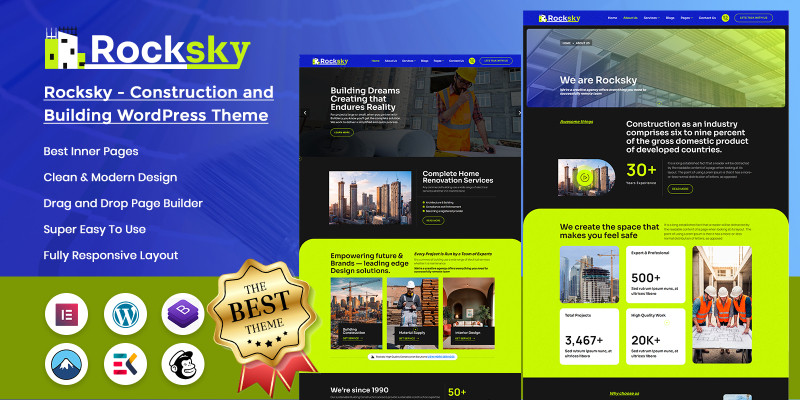 Rocksky - Construction WordPress Theme. Rocksky is a robust and visually impressive WordPress theme designed for construction firms, builders, and architectural services.