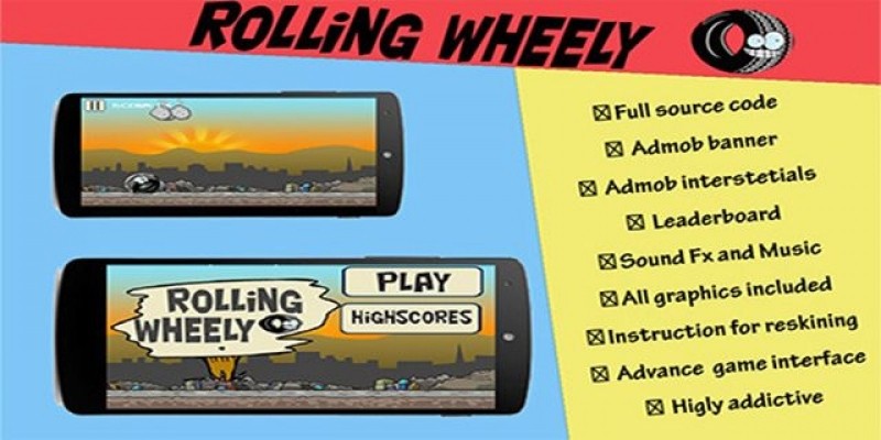 Rolling Wheely with Admob - Android Source Code. Simple arcade game have fun by rolling a Wheely