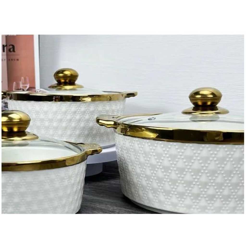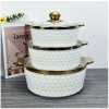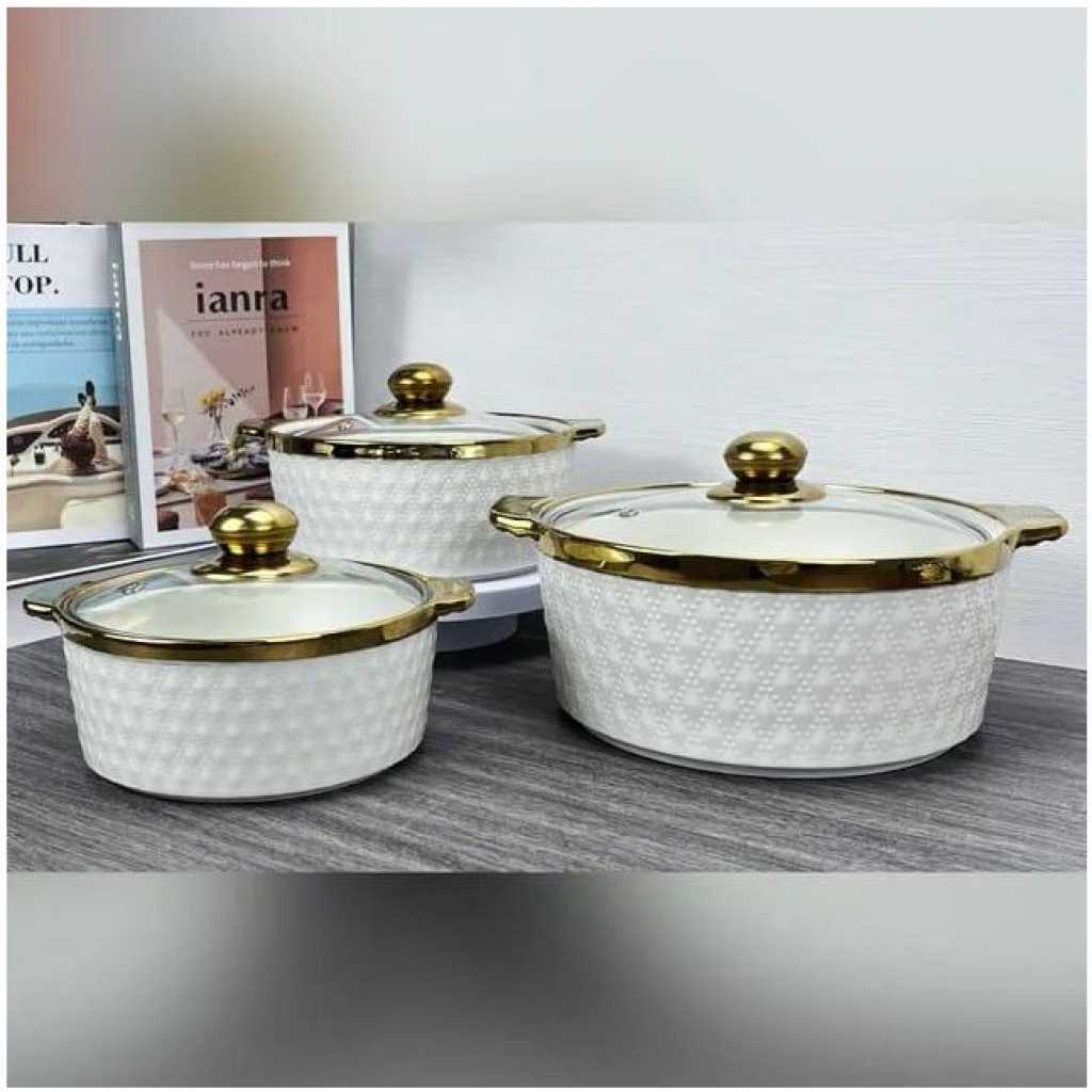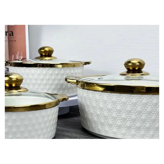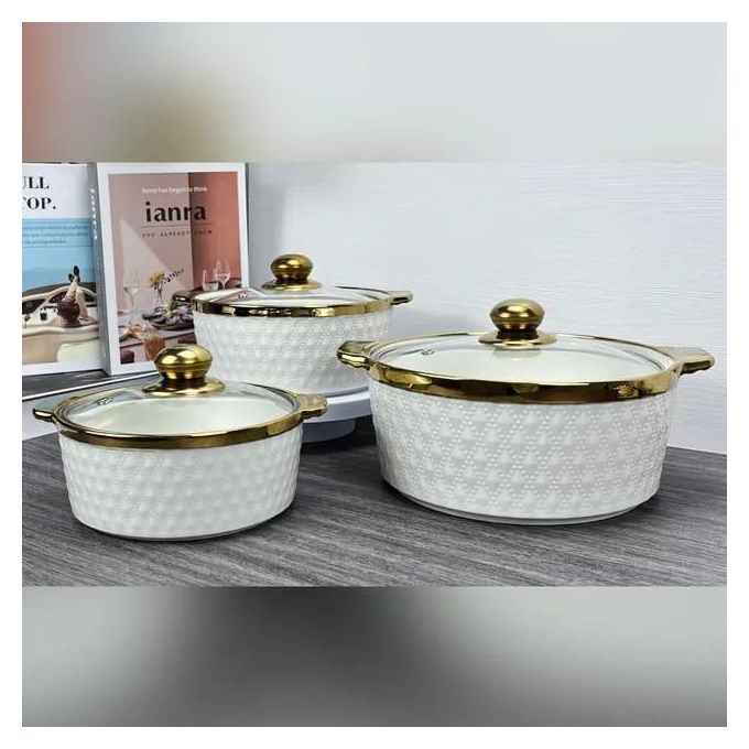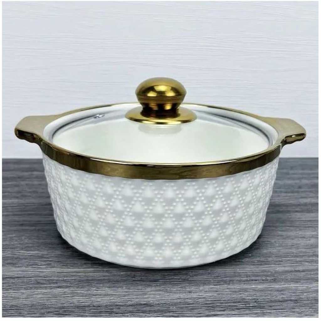 Round Ceramic Casserole Pot Tableware Candle Fire Heating Hotel Dry Soup Pot With Golden Lid Multi functional 3-Piece Cookware Set: Including 1.7qt blue casserole dish and 1qt red casserole dish, the nonstick ceramic pot set can satisfy your needs of daily cooking for simmering, stewing, and braising which is compatible with gas cooktop and ceramic electric cooktop. Quick & Even Heating: Made of high-quality ceramics materials with a glossy finish, the 2-piece cookware set can conduct heat quickly and evenly which is time-saving and energy-saving. Safe to heat up to 842 degrees Fahrenheit. Healthy & Nonstick Ceramic Coating: Coated by high-performance nonstick ceramic coating, the casserole set not only needs less oil or button for effortless cooking but also releases food easily with no scraping. What’s more, the elegant appearance can make your kitchen surrounding lovely and fascinating. Heat-Resistant Handle & Humanized Ceramic Lid: Equipped with heat-resistant handles for easy and secure grip, the cookware set is easy to maneuver and safe to use. Furthermore, the steam holes on the lid help create water drops and vapors evenly to make food more juicy and tasty. Easy to Use & Clean: Thanks to the nonstick design, the cookware set is easy to clean in the dish-washing machine or hand wash with soap. And the 2 pots in differeA great kitchen helper for cooking! Our ceramic cookware set comes with 2 casserole dish that allow you to boil pasta, make sauces, prepare meats, and reheat leftovers easily and quickly. The heat-resistant ceramic materials feature great heat-retaining abilities and can handle heat up to 842 degrees Fahrenheit, and the high-quality nonstick ceramic coating not only helps conduct heat quickly and evenly but also not reacts to food and not absorb the smell. Other than that, the cookware set is equipped with heat-resistant handles for easy holding and steam holes to exhaust extra steam avoiding shaking. The 2 ceramic pots with different colors can make your food look more juicy and delicious.nt sizes are easy to stack for space-saving storage. Key Features: Round Ceramic Casserole Pot Tableware Candle Fire Heating Hotel Dry Soup Pot With Golden Lid Multi functional 3-Piece Cookware Set: Including 1.7qt blue casserole dish and 1qt red casserole dish, the nonstick ceramic pot set can satisfy your needs of daily cooking for simmering, stewing, and braising which is compatible with gas cooktop and ceramic electric cooktop. Quick & Even Heating: Made of high-quality ceramics materials with a glossy finish, the 2-piece cookware set can conduct heat quickly and evenly which is time-saving and energy-saving. Safe to heat up to 842 degrees Fahrenheit. Healthy & Nonstick Ceramic Coating: Coated by high-performance nonstick ceramic coating, the casserole set not only needs less oil or button for effortless cooking but also releases food easily with no scraping. What’s more, the elegant appearance can make your kitchen surrounding lovely and fascinating. Heat-Resistant Handle & Humanized Ceramic Lid: Equipped with heat-resistant handles for easy and secure grip, the cookware set is easy to maneuver and safe to use. Furthermore, the steam holes on the lid help create water drops and vapors evenly to make food more juicy and tasty.