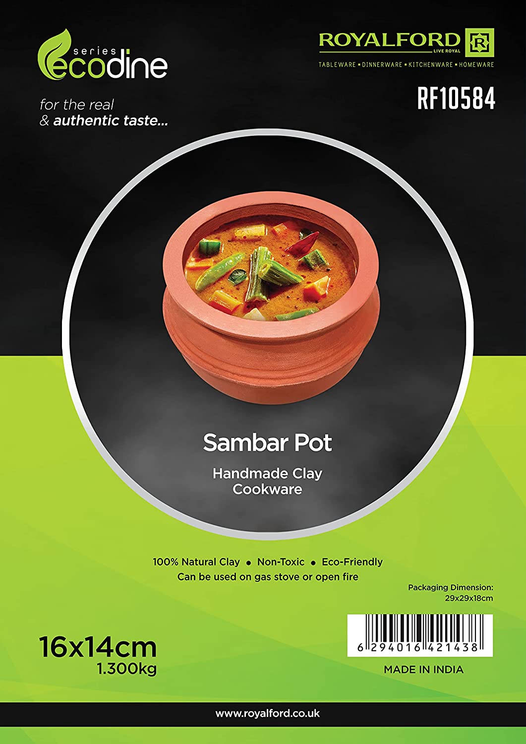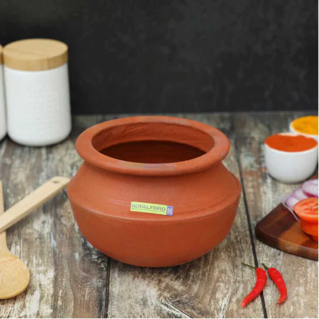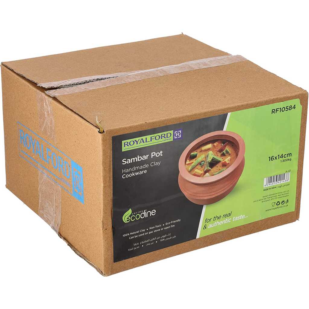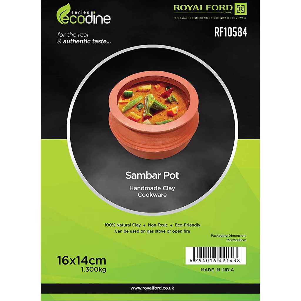 Royalford Sambar Pot, Handmade Clay Cookware, RF10584 100% Natural Clay Non-Toxic & Eco-Friendly Can Be Used On Gas Stove Or Open Fire Earthen Pot/ Clay Pot For Curry, Sambar, Rice, Red. Royalford Sambar Pot – For The Real & Authentic TasteWe provide a wide network of traditional pottery items in red clay, handmade, with smooth texture. They are used for cooking hot foods on stoves, serving cold foods, and to be used as decorative items. Our products are handmade can be used on a gas stove, are safe and may be exposed to direct fire. They can be stored in refrigerators, and are not harmful to health. Our mission is to provide high quality services and products, always being competitive in the market, to be in a position to offer a full range of articles in traditional pottery. Instructions for use before the first use, place the article in water for 8 hours. These articles are unfit to retain liquids for many hours, so it is natural that after a few hours slight leaks may occur In case of using direct flame: Always use a flame of the size of the piece or bigger, avoid using the flame of inferior size. Avoid putting an empty piece on the flame, ideally, start cooking with the light flame and gradually increase. Avoid large temperature differences. You can use these items on the gas stove, and electric stove, or wood burning stove. Can’t be used in an induction stove.