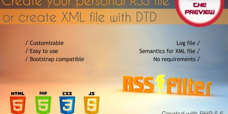 RSS Filter PHP Script. Create your personal RSS file or create XML file with DTD