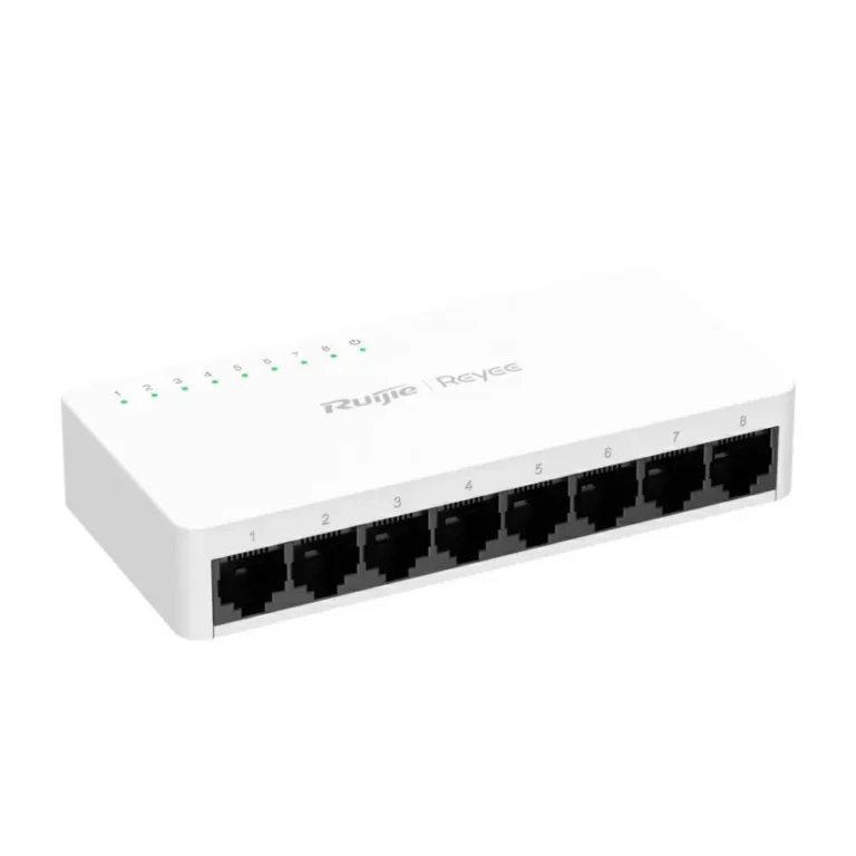 RG-ES08F 8-Port 10/100 Mbps Unmanaged Non-PoE Switch The Ruijie Reyee RG-ES0/ES100 series offers a range of unmanaged network switches designed for easy deployment and reliable performance in home and small office environments. These compact and energy-efficient switches come in various configurations to suit your specific needs. These switches are plug-and-play, requiring no configuration for basic operation. Just connect your devices and enjoy a wired network. The models with Fast Ethernet ports are suitable for basic networking needs with a limited number of devices. If you require high-speed data transfer for tasks like video streaming or file sharing, consider the models with Gigabit Ethernet ports. Product Features Increased Speed and Efficiency: Boost your network performance and scalability with the Reyee RG-ES08F, a reliable and user-friendly 5-port unmanaged switch. This compact switch is ideal for expanding your wired network in home offices or small businesses. Equipped with eight 10/100 Mbps Ethernet ports, the RG-ES08F provides stable and efficient data transfer for your wired devices. Easy to use, the RG-ES08F operates without complex management software, making it ideal for users who don’t require advanced switch features. Compact and reliable: Enjoy peace of mind with Reyee’s high-performance design and robust construction. The RG-ES08F delivers consistent and dependable network connections for all your wired devices. With a space-saving design, the RG-ES08F fits discreetly on your desk or shelf. The RG-ES08F is designed for low power consumption, reducing your energy footprint and saving on electricity costs. Backed by a 3-year warranty, the RG-ES08F ensures long-lasting performance and peace of mind. Upgrade your network with the Reyee RG-ES08F and experience the benefits of a fast, reliable, and easy-to-use wired connection.