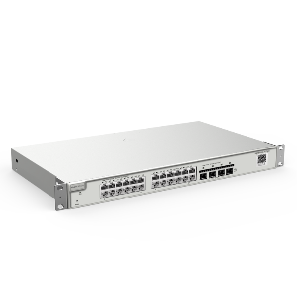 The Ruijie RG-NBS3200-24GT4XS-P is a high-performance, cloud-managed Layer 2 switch designed to meet the demanding needs of modern enterprise networks. With its robust set of features, this switch is ideal for a variety of applications, including enterprise, hospitality, education, and retail environments. High Port Density and Power Over Ethernet (PoE+) Equipped with 24 Gigabit Ethernet ports, the RG-NBS3200-24GT4XS-P provides ample connectivity for a wide range of devices. Each port supports PoE+, delivering up to 30W per port, with a total power budget of 370W. This makes it perfect for powering IP cameras, wireless access points, VoIP phones, and other PoE-enabled devices, eliminating the need for additional power supplies and reducing cable clutter. Advanced Layer 2 Features The switch supports a comprehensive set of Layer 2 features, including VLANs, link aggregation, and IGMP snooping. These features enhance network performance and security, allowing for efficient traffic management and segmentation. The switch also supports advanced security features such as port security, DHCP snooping, and IP source guard, ensuring a secure and reliable network environment. Cloud Management The RG-NBS3200-24GT4XS-P is part of Ruijie’s cloud-managed switch series, allowing for easy and centralized management through the Ruijie Cloud platform. This platform provides a user-friendly interface for monitoring and configuring the switch, making network management more efficient and reducing the need for on-site IT support. With features like zero-touch provisioning and remote troubleshooting, the Ruijie Cloud platform simplifies network operations and maintenance. High Performance and Reliability With a switching capacity of 128 Gbps and a forwarding rate of 95.24 Mpps, the RG-NBS3200-24GT4XS-P ensures high performance and low latency for all connected devices. The switch is built with enterprise-class hardware, including a robust metal chassis and high-quality components, ensuring long-term reliability and durability. Additionally, the switch supports redundant power supplies, providing an extra layer of reliability for mission-critical applications. Flexible Deployment Options The RG-NBS3200-24GT4XS-P is designed for flexible deployment in various environments. It can be mounted in a standard 19-inch rack or placed on a desktop, providing versatility in installation. The switch also features a fanless design, ensuring quiet operation, which is ideal for office and classroom settings. Technical Specifications Ports : 24 x 10/100/1000Base-T PoE+ ports, 4 x SFP+ uplink PoE Power Budget : 370W Switching Capacity : 128 Gbps Forwarding Rate : 95.24 Mpps MAC Address Table : 16K VLANs : 4094 Dimensions : 440 mm x 357.6 mm x 43.6 mm Weight : 4.75 kg MTBF : > 200,000 hours Power Supply : Fixed, single AC Fan : Single, left-to-right airflow Port Surge Protection : 6 kV Warranty : 1 year