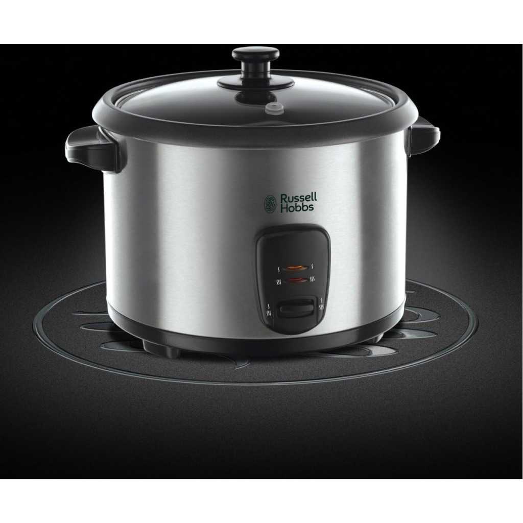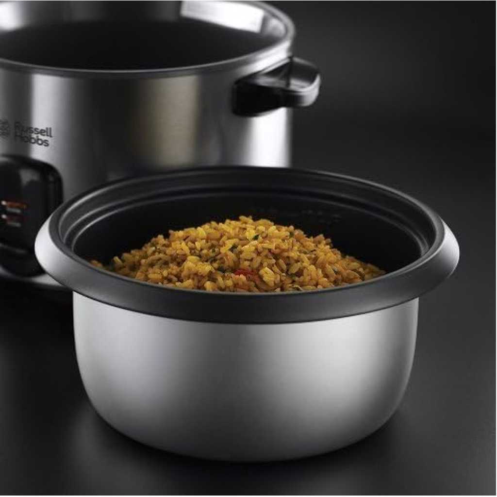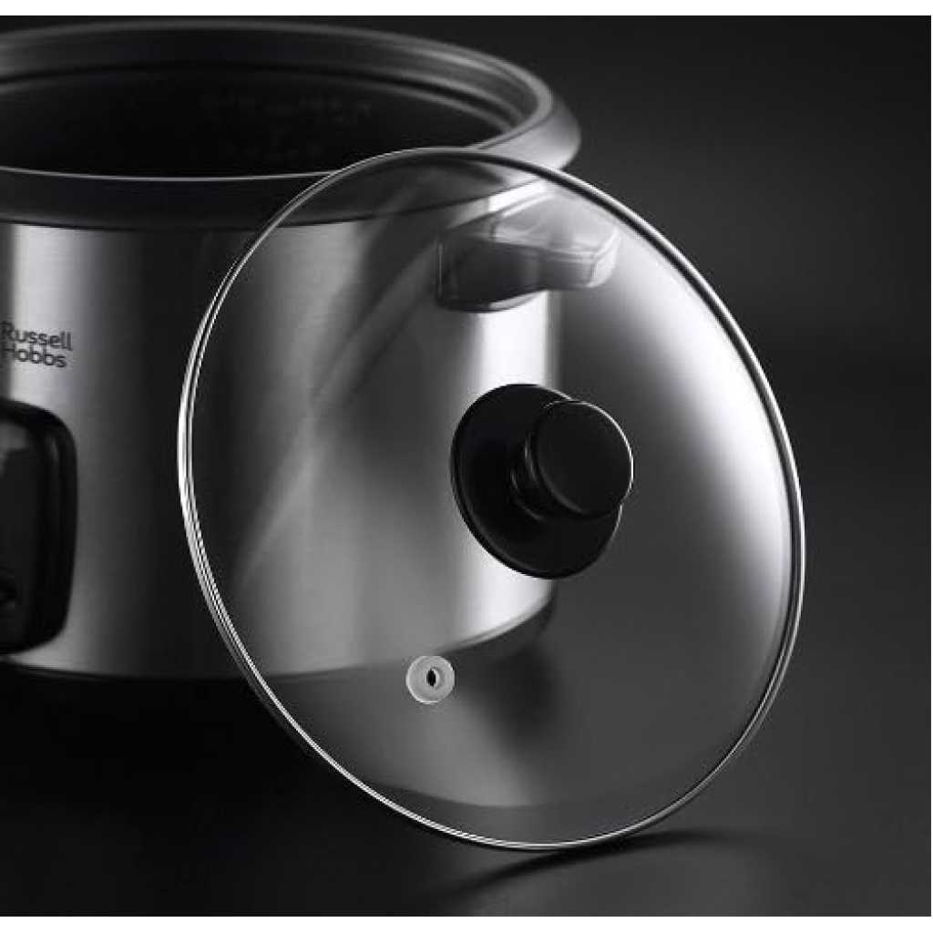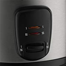 Key Features: Large 1.8 Litre Capacity Bowl With Handy Keep Warm Function- Enough For Cooking Ten Cups Of Rice Includes Additional Tray For Steaming Fish Or Vegetables Non-Stick Removable Bowl Includes spatula and measuring cup Elegant And Easy To Clean Stainless Steel Base With A Glass Lid