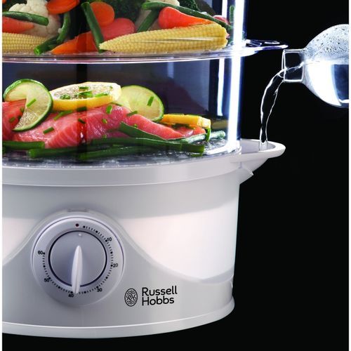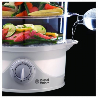 This Stainless Steel 3 Tier Steamer from Russell Hobbs is great for steaming meat, fish and vegetables to create that easy healthy meal you’ve been craving! Its 9L capacity is perfect for large households. It has a 60 minute timer for precise results and has an auto shut off for safety. It’s easy to dissemble for ease of cleaning and includes a handy rice bowl for practicality! The Russell Hobbs Food Steamer has a nine-litre capacity and is the ideal way to cook fish, chicken, rice, potatoes and vegetables healthily. The three-tier steamer comes in a stainless steel finish, bringing modern design into the kitchen. The sixty-minute timer lets you know when food will be ready and the safety cut-off feature shuts off the steamer in the event of it boiling dry. Steamed food retains more vitamins and minerals for healthier tasting food. The stackable baskets make it easy to steam different foods at the same time and also make the steamer easy to store. The steamer also comes with a rice bowl. This compact steamer would not take up too much space on your worktop.