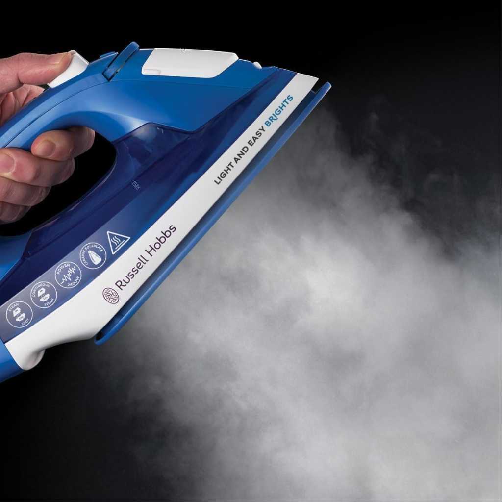 Introducing the Russell Hobbs Steam Iron, your ultimate companion for effortless ironing and wrinkle-free clothes. With a powerful 2400W max power, this portable clothing iron ensures quick heat-up and efficient performance every time you use it.Featuring a non-stick ceramic soleplate infused with Sapphire, this iron not only looks stunning but also glides smoothly over your garments, leaving them perfectly pressed without catching or sticking.With auto-steam technology, enjoy a reliable 30g/min of continuous steam, eliminating creases effortlessly without constant button fiddling. Need more control? Utilize the water spray feature to directly tackle stubborn wrinkles, or deliver a powerful shot of steam at a rate of 90g/min for those extra tough areas.
